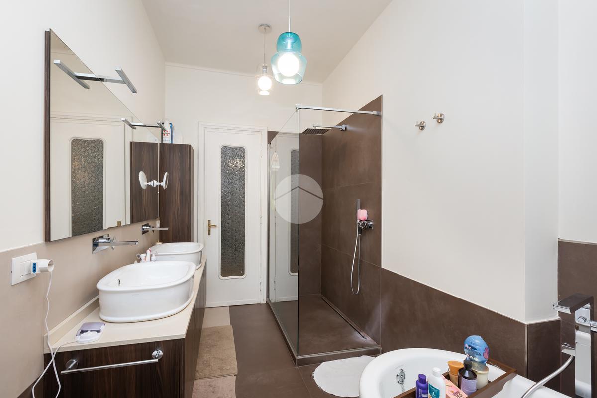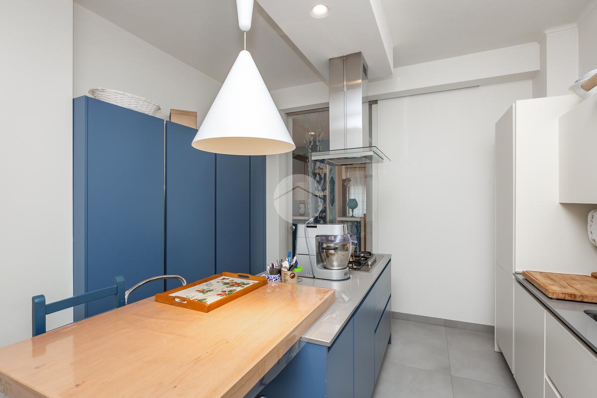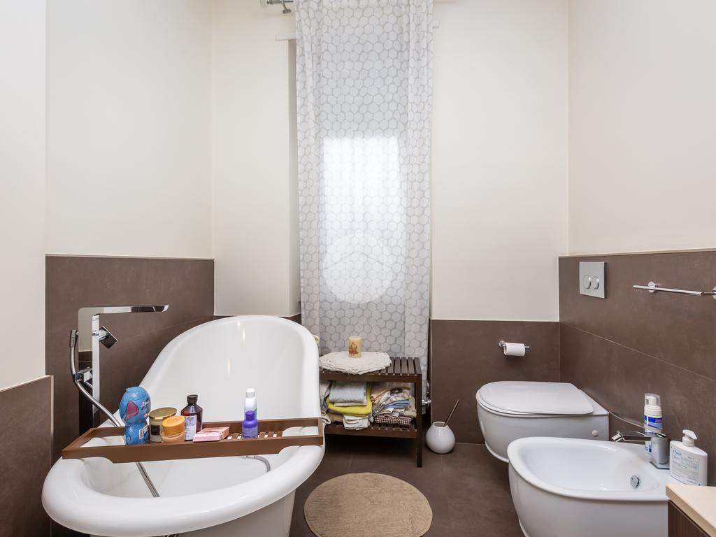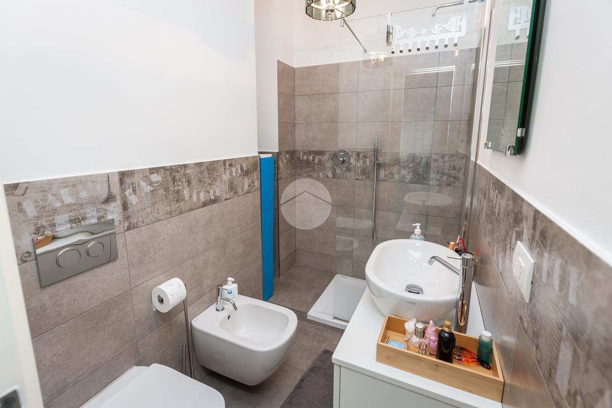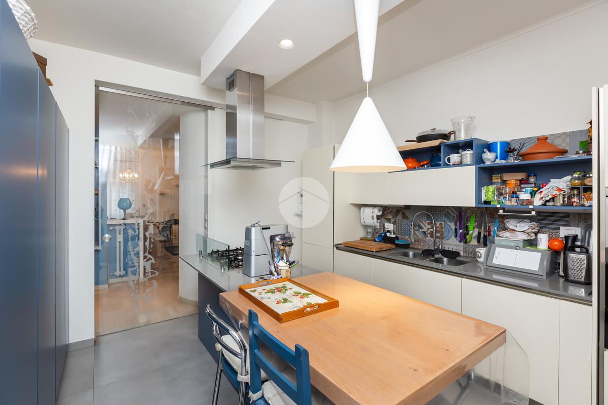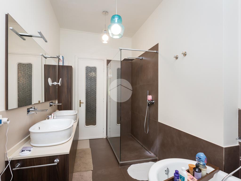 L’appartamento si trova al secondo piano di un palazzo signorile dotato del servizio di portineria. L'immobile internamente è stato ristrutturato circa 8 anni fa. Dal portoncino blindato accediamo direttamente sull’ingresso il quale ci accompagna alla sala, spazio comodo dove vivere momenti di relax. Dal lato opposto alla sala c’è la cucina, vecchio tinello con cucinino, trasformata ad oggi in una zona abitabile con isola centrale (ex tinello), ed il vecchio cucinino in zona lavanderia. Questa parte della casa ha l’affaccio lato cortile grazie al balcone. Il disimpegno ci accompagna nella zona notte. Il bagno principale, molto elegante, è dotato sia di vasca che di doccia ed è finestrato. Le camere da letto sono due, una con bagno interno completo di sanitari e doccia, l’altra con cabina armadio. Entrambe hanno l’affaccio, una su strada ed una lato cortile, grazie al balcone pertinenziale. La proprietà dispone di una cantina al piano interrato. Il teleriscaldamento è il sistema di riscaldamento presente nel condominio.