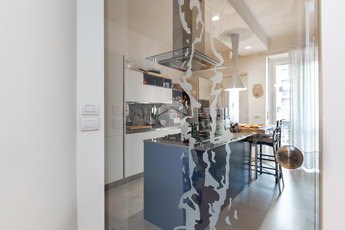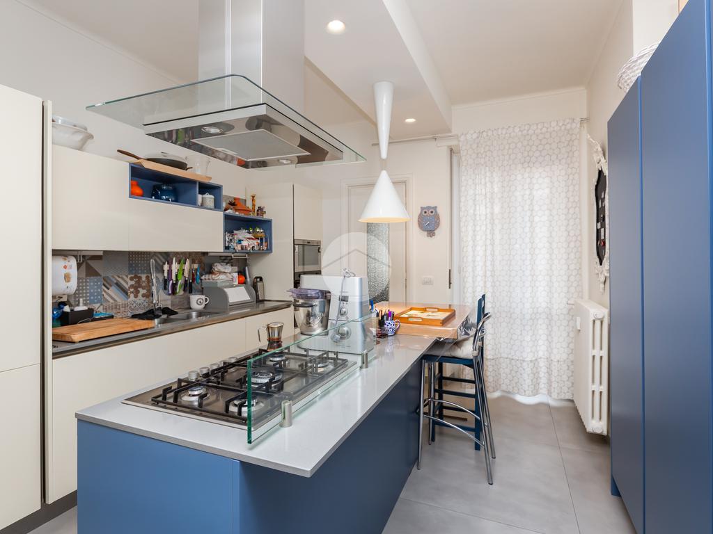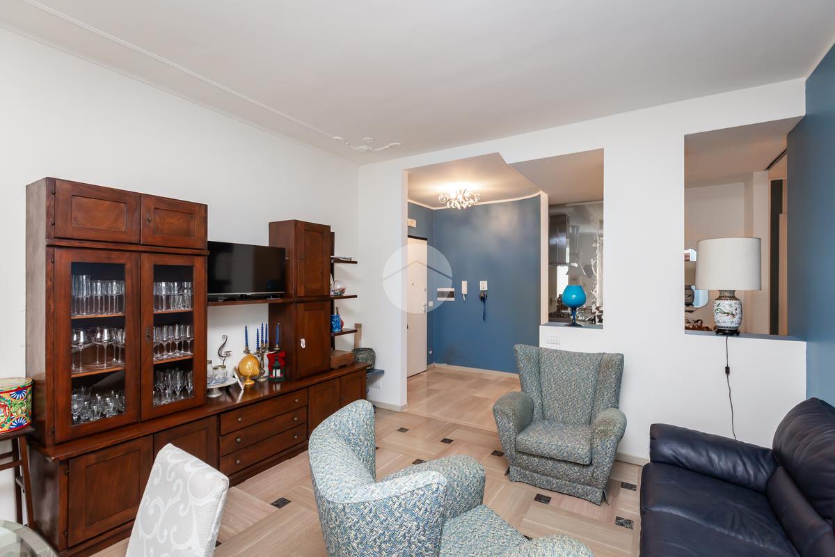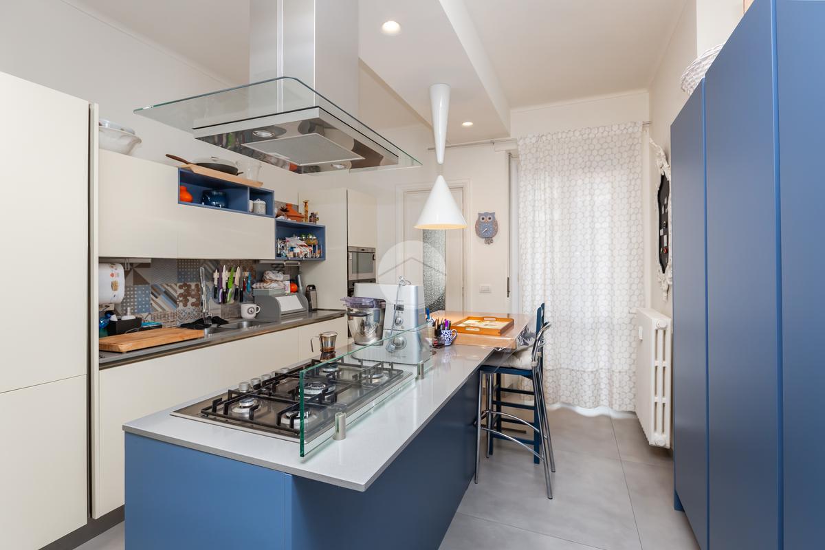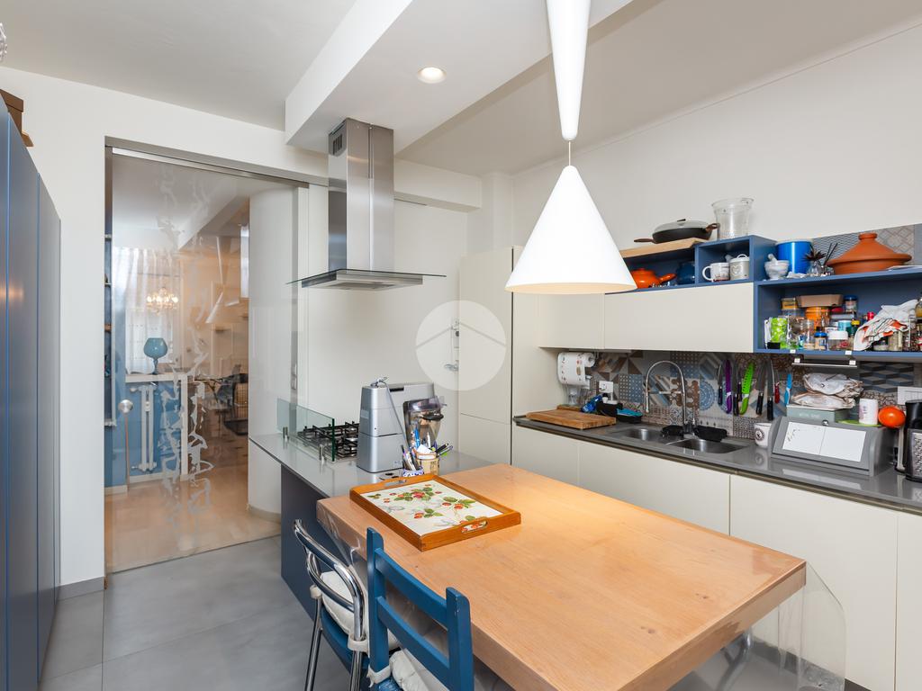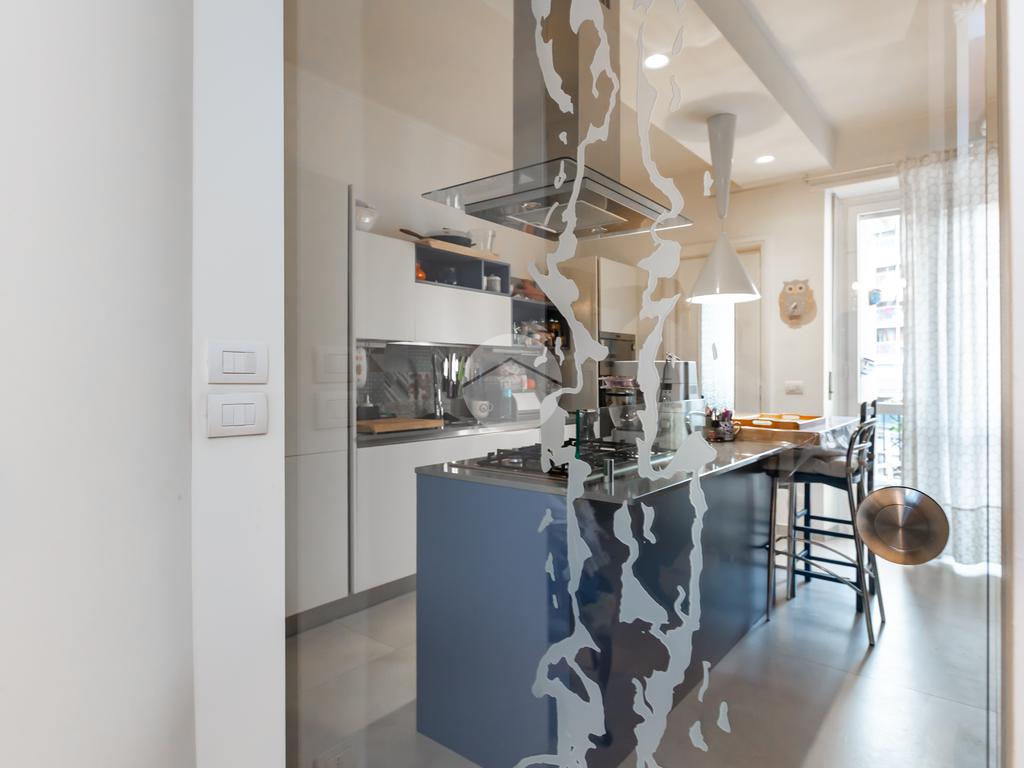 L’appartamento si trova al secondo piano di un palazzo signorile dotato del servizio di portineria. L'immobile internamente è stato ristrutturato circa 8 anni fa. Dal portoncino blindato accediamo direttamente sull’ingresso il quale ci accompagna alla sala, spazio comodo dove vivere momenti di relax. Dal lato opposto alla sala c’è la cucina, vecchio tinello con cucinino, trasformata ad oggi in una zona abitabile con isola centrale (ex tinello), ed il vecchio cucinino in zona lavanderia. Questa parte della casa ha l’affaccio lato cortile grazie al balcone. Il disimpegno ci accompagna nella zona notte. Il bagno principale, molto elegante, è dotato sia di vasca che di doccia ed è finestrato. Le camere da letto sono due, una con bagno interno completo di sanitari e doccia, l’altra con cabina armadio. Entrambe hanno l’affaccio, una su strada ed una lato cortile, grazie al balcone pertinenziale. La proprietà dispone di una cantina al piano interrato. Il teleriscaldamento è il sistema di riscaldamento presente nel condominio.