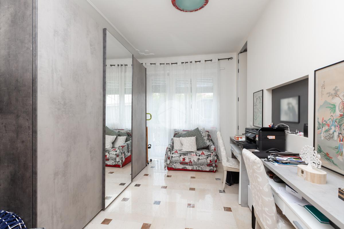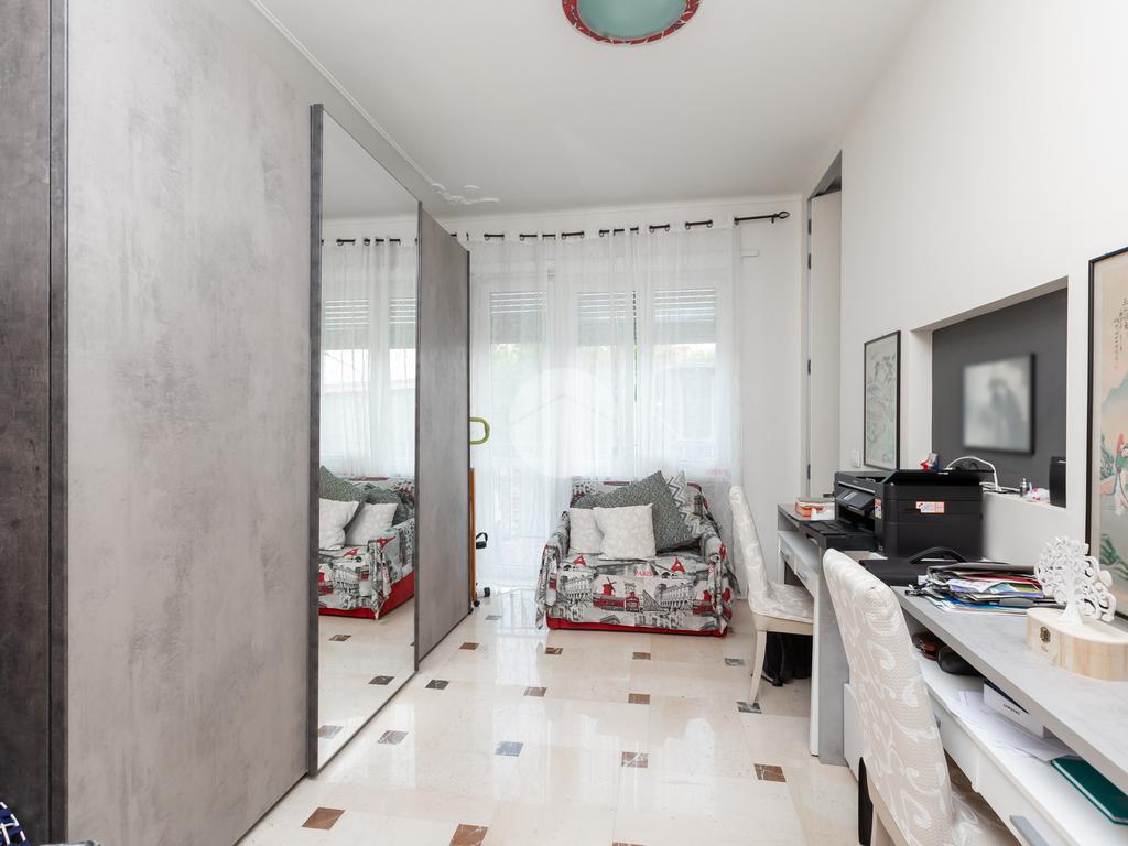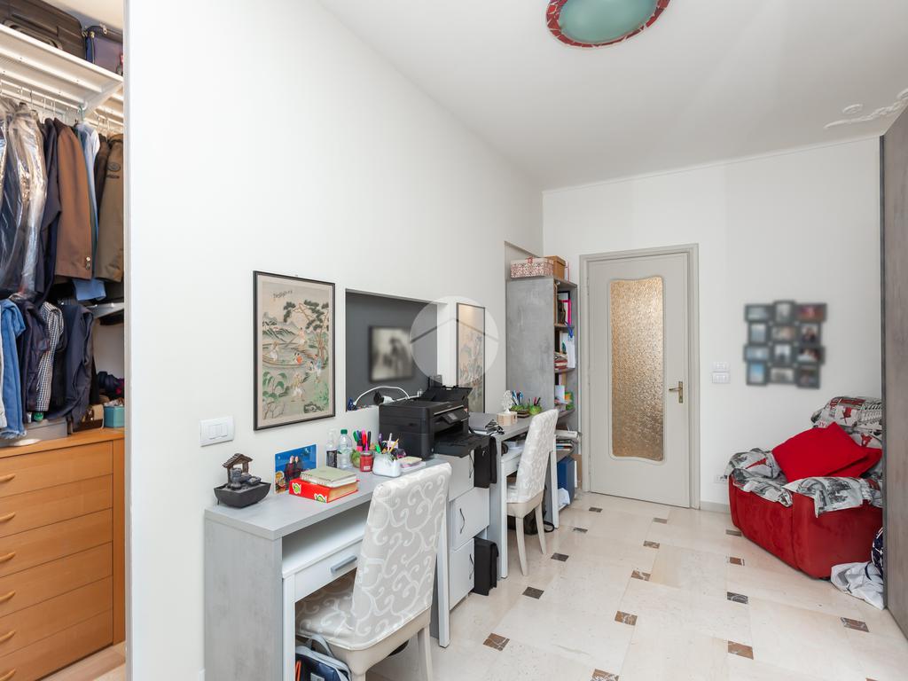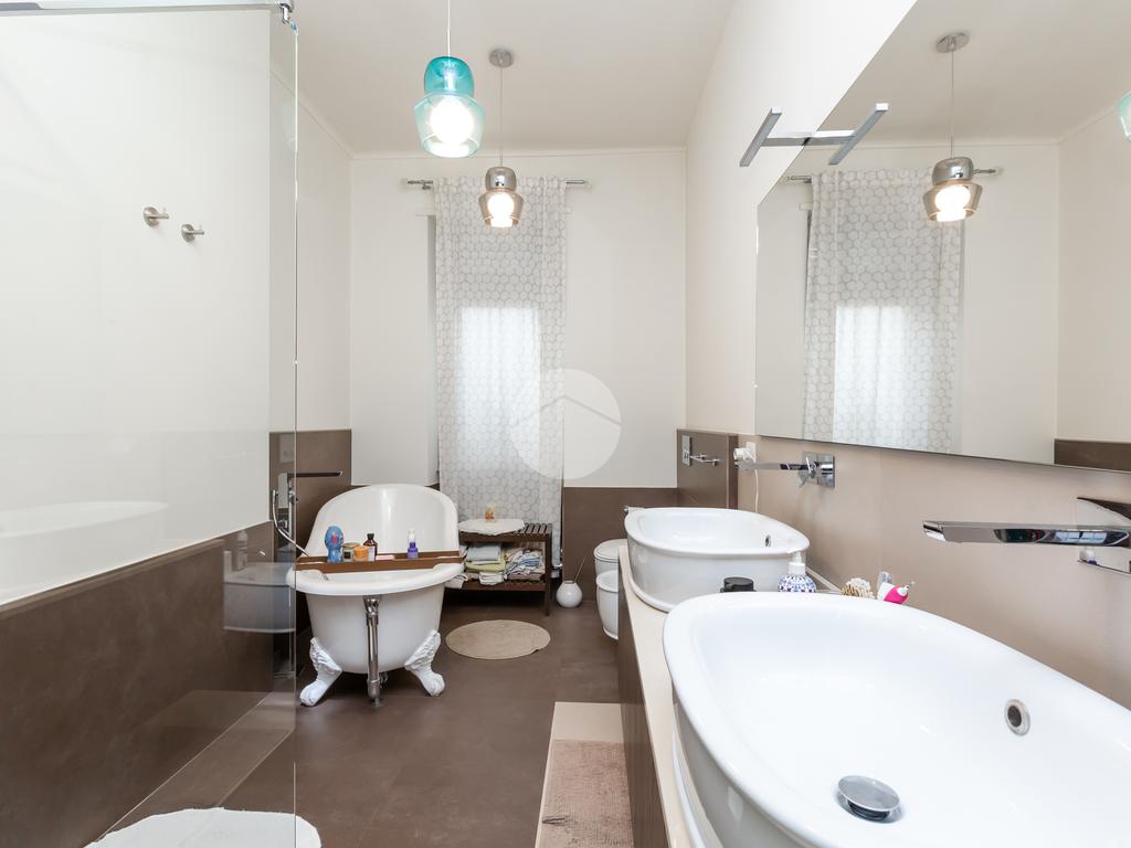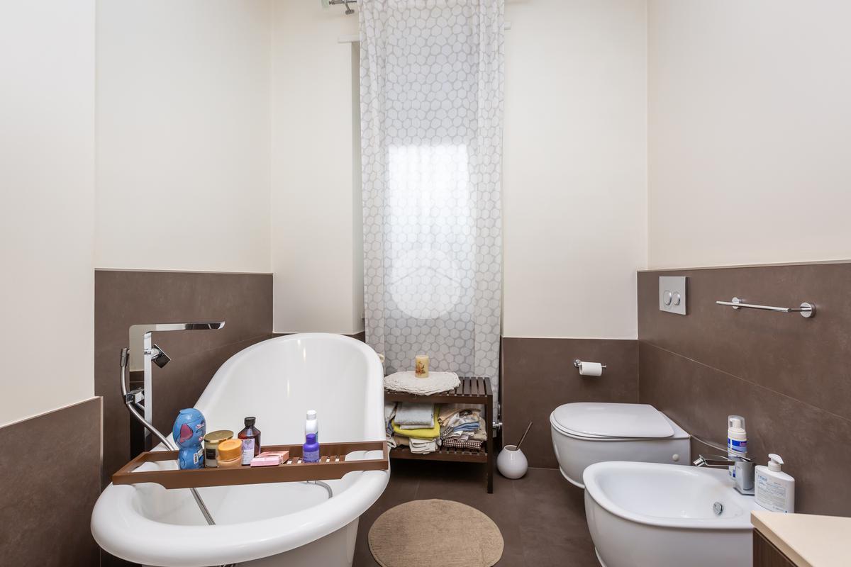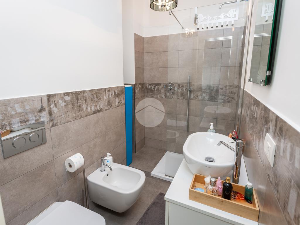 L’appartamento si trova al secondo piano di un palazzo signorile dotato del servizio di portineria. L'immobile internamente è stato ristrutturato circa 8 anni fa. Dal portoncino blindato accediamo direttamente sull’ingresso il quale ci accompagna alla sala, spazio comodo dove vivere momenti di relax. Dal lato opposto alla sala c’è la cucina, vecchio tinello con cucinino, trasformata ad oggi in una zona abitabile con isola centrale (ex tinello), ed il vecchio cucinino in zona lavanderia. Questa parte della casa ha l’affaccio lato cortile grazie al balcone. Il disimpegno ci accompagna nella zona notte. Il bagno principale, molto elegante, è dotato sia di vasca che di doccia ed è finestrato. Le camere da letto sono due, una con bagno interno completo di sanitari e doccia, l’altra con cabina armadio. Entrambe hanno l’affaccio, una su strada ed una lato cortile, grazie al balcone pertinenziale. La proprietà dispone di una cantina al piano interrato. Il teleriscaldamento è il sistema di riscaldamento presente nel condominio.