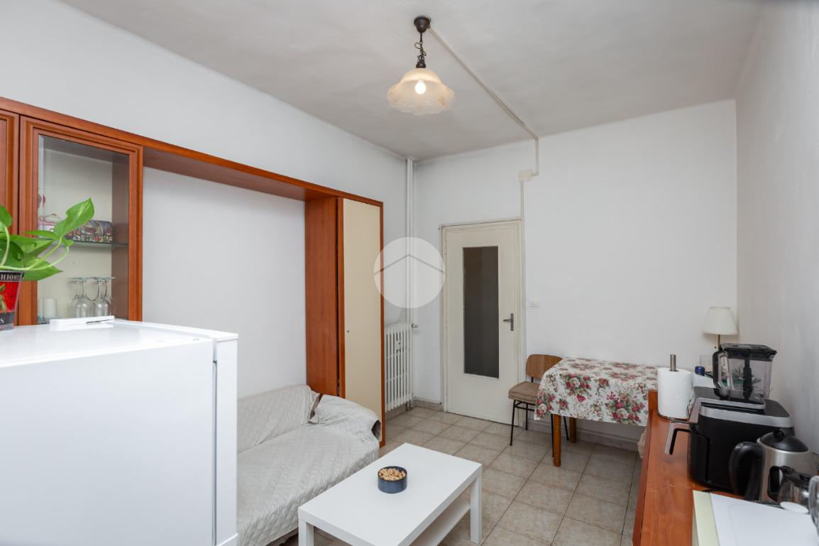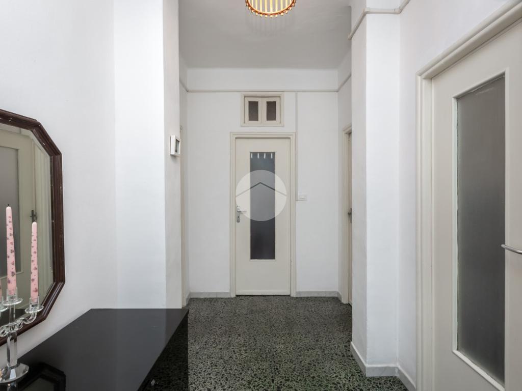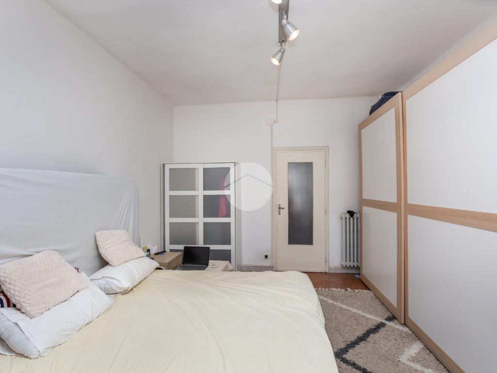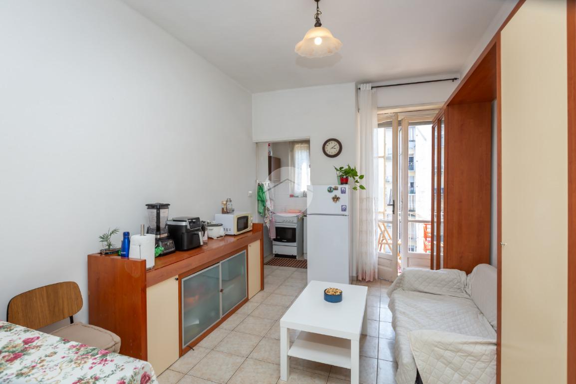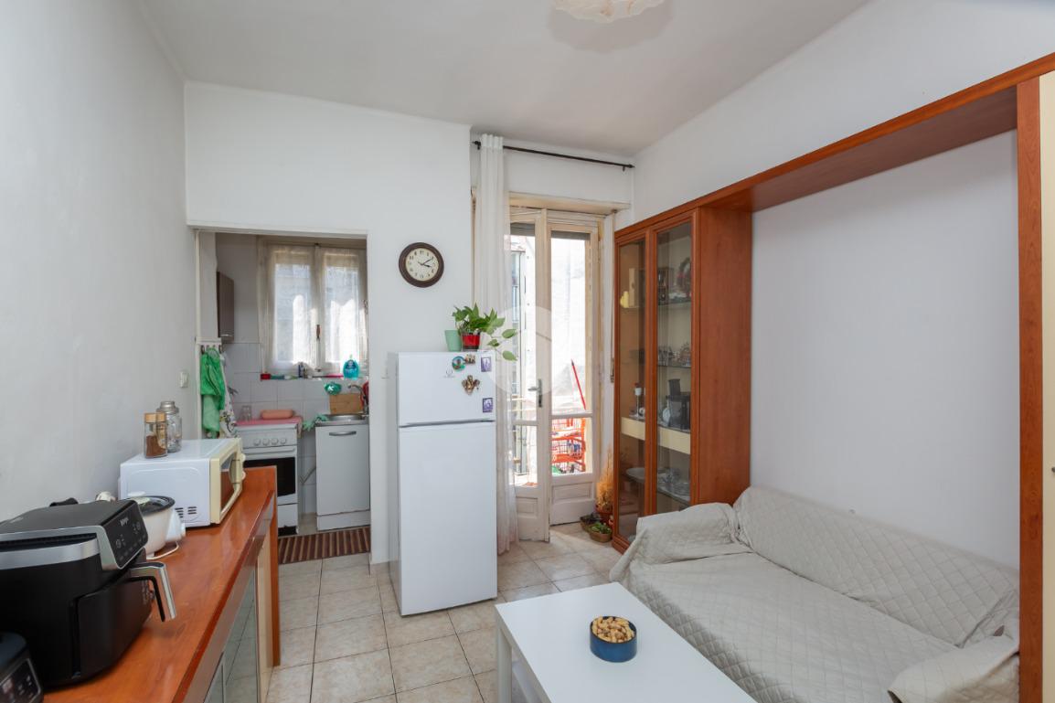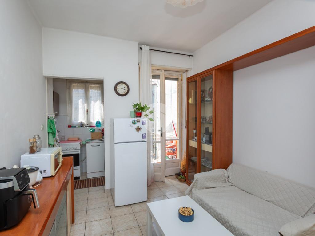 Il palazzo è ben tenuto nelle sue parti comuni ed è privo di ascensore. L’appartamento si trova al terzo piano ed ha la doppia esposizione. Tramite il portoncino accediamo sull’ingresso il quale disimpegna ogni singolo ambiente. La cucina è composta da tinello con cucinino e affaccia tramite un balcone sull'interno cortile. La camera da letto è ampia ed è esposta anch’essa grazie ad un balcone lato via interna. Il bagno, finestrato, ha un taglio classico dell’epoca ed è dotato di vasca. Nel cuore della casa c’è un ripostiglio. La proprietà dispone di una cantina al piano interrato. L’appartamento viene venduto con un posto auto (prezzo € 6.000,00) sito nell’interno cortile. Il riscaldamento è centralizzato con termo valvole.