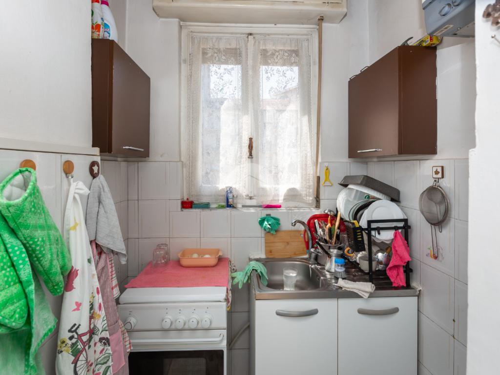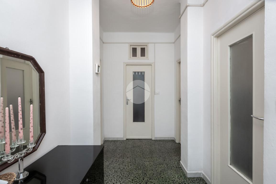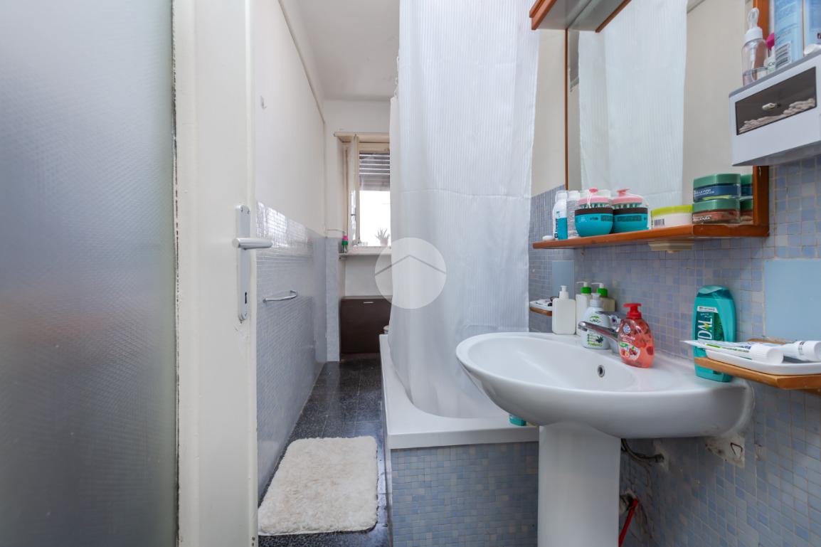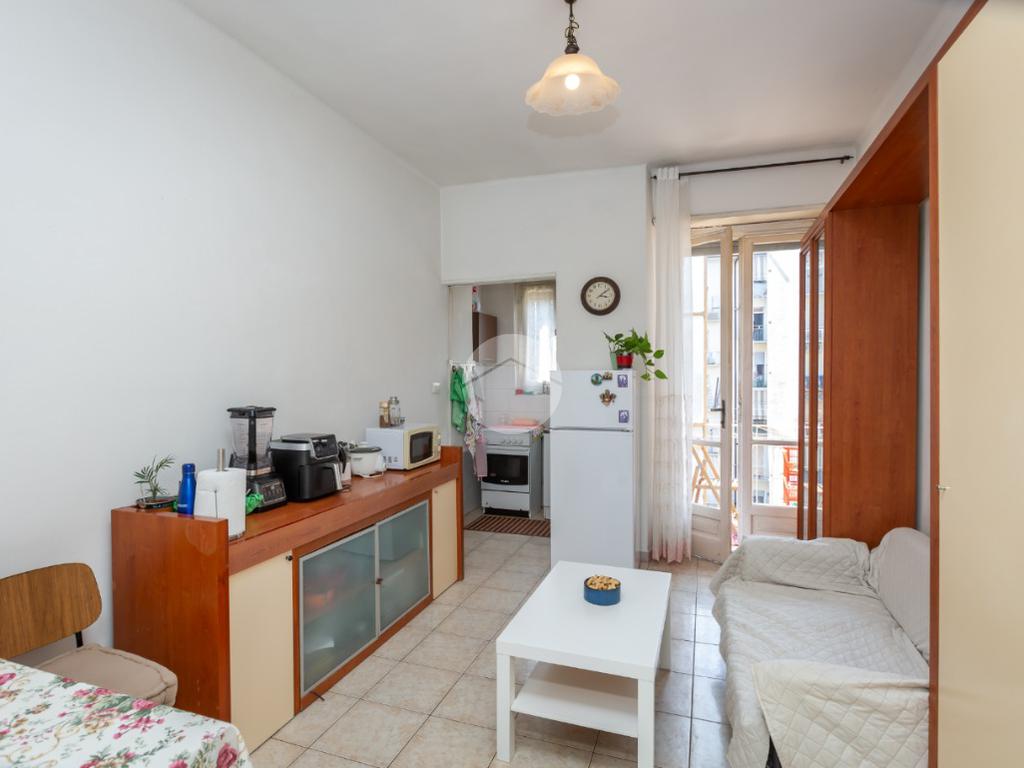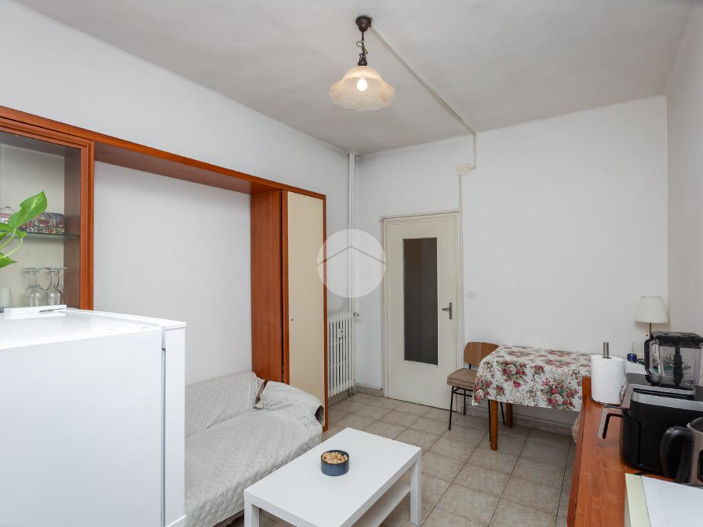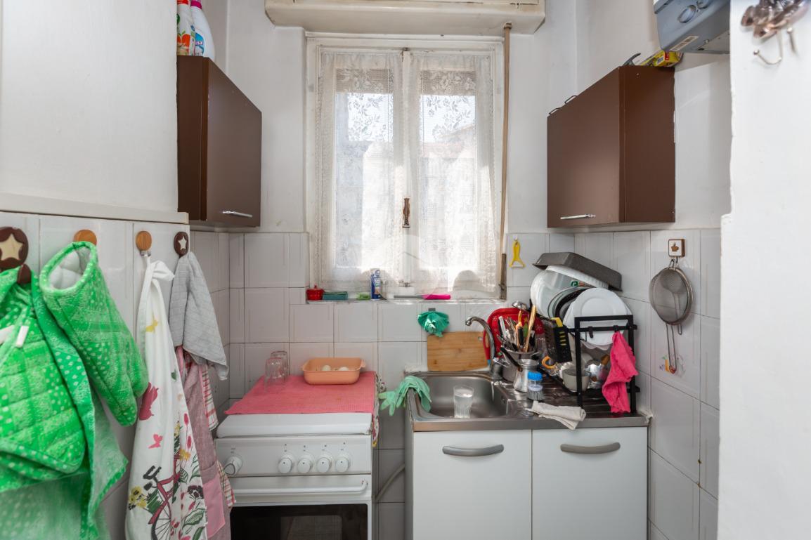 Il palazzo è ben tenuto nelle sue parti comuni ed è privo di ascensore. L’appartamento si trova al terzo piano ed ha la doppia esposizione. Tramite il portoncino accediamo sull’ingresso il quale disimpegna ogni singolo ambiente. La cucina è composta da tinello con cucinino e affaccia tramite un balcone sull'interno cortile. La camera da letto è ampia ed è esposta anch’essa grazie ad un balcone lato via interna. Il bagno, finestrato, ha un taglio classico dell’epoca ed è dotato di vasca. Nel cuore della casa c’è un ripostiglio. La proprietà dispone di una cantina al piano interrato. L’appartamento viene venduto con un posto auto (prezzo € 6.000,00) sito nell’interno cortile. Il riscaldamento è centralizzato con termo valvole.