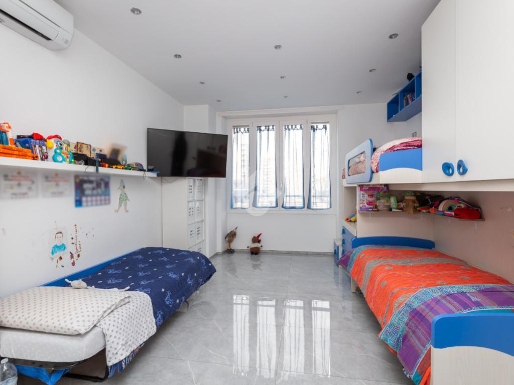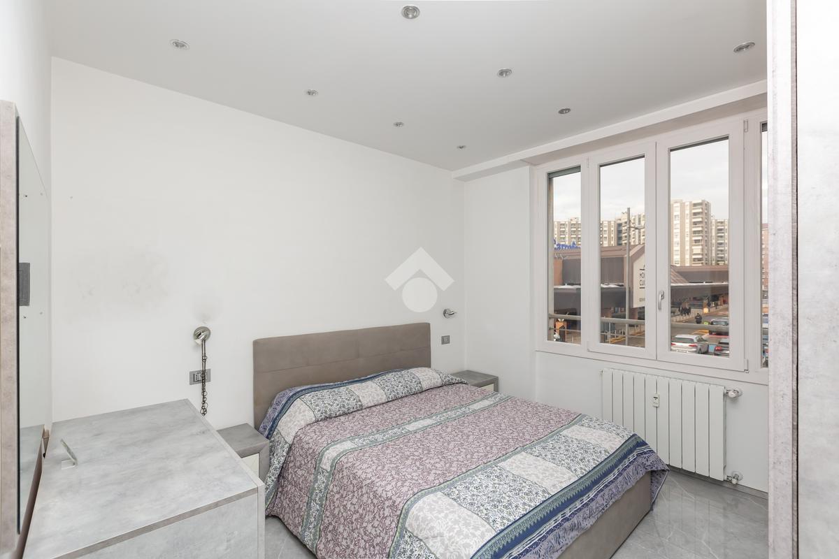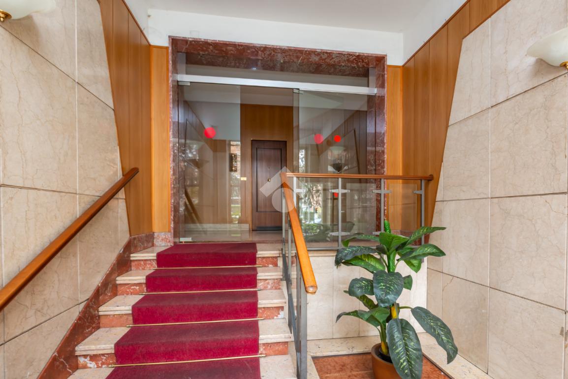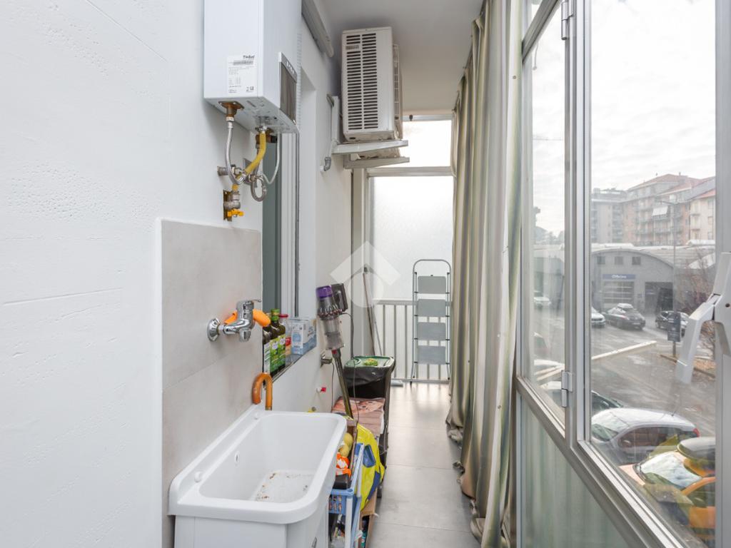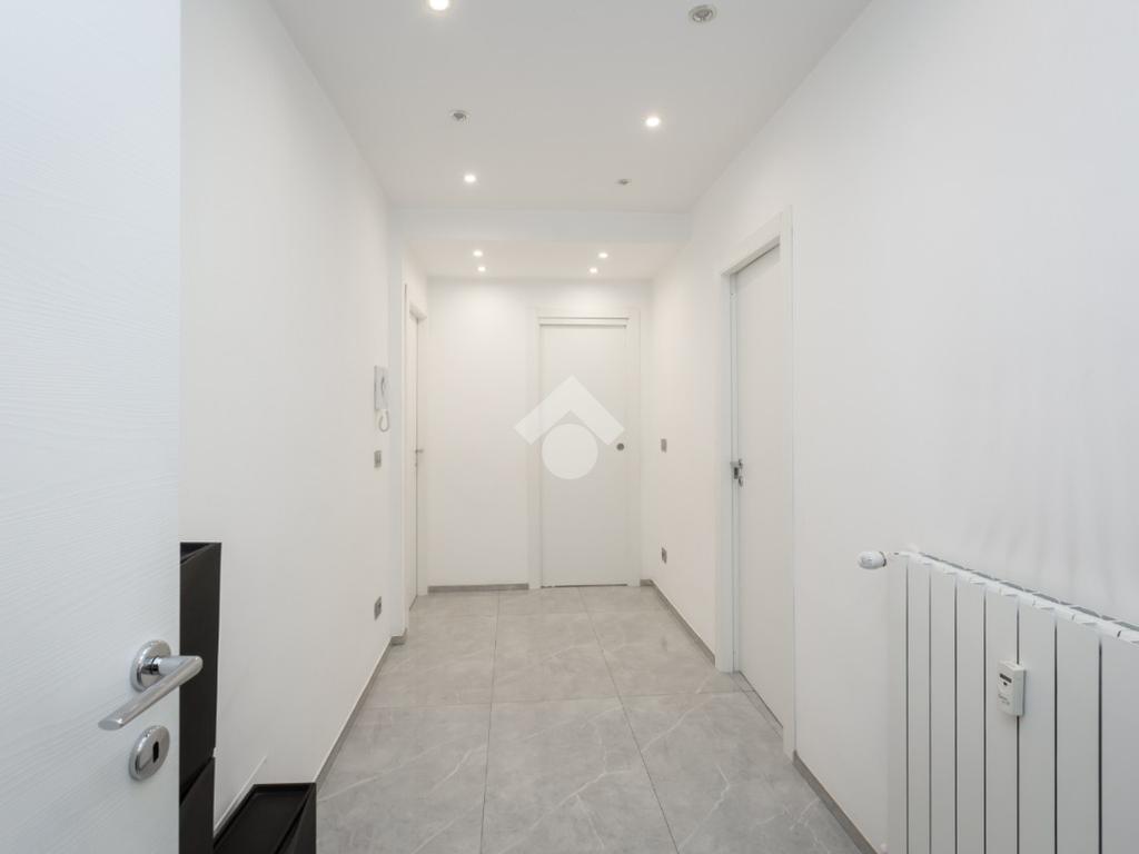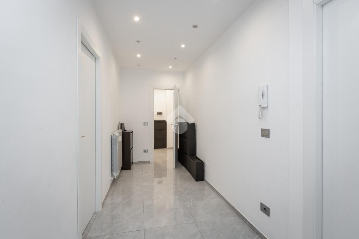 L’appartamento è al primo piano, raggiungibile tramite ascensore, in un complesso decoroso rientrato dalla strada grazie al giardino condominiale. L'immobile gode di una tripla esposizione. Internamente è stato completamente e finemente ristrutturato e si sviluppa su una metratura generosa, caratteristica che rende vivibile al meglio ogni singolo vano. L'accesso avviene tramite un portoncino blindato che si affaccia sull’ingresso il quale ci accompagna su ampio disimpegno che divide in modo ottimale tutti i vani dell'immobile. La zona giorno è un ambiente ampio e confortevole. Date le dimensioni ci permette di avere una cucina lineare, con un tavolo quadrato centrato rispetto alla stanza, ed una parete dedicata alla tv con difronte un comodo divano. L’affaccio è lato cortile, grazie alle finestre e all’accesso ad un ampio balcone verandato. Le camere da letto sono due, entrambe dotate di tutti i comfort e con affaccio su via Stelvio fronte Carrefour. L’appartamento ha i doppi servizi. Il primo con vasca e finestra. Il secondo con doccia e porta finestra che dà sul balcone interno. Adiacente al primo servizio troviamo un ripostiglio attualmente utilizzato come lavanderia. Cucina e camere sono munite di climatizzatore. Tutti gli infissi esterni sono in pvc e le tapparelle elettriche. La proprietà dispone di una cantina al piano interrato. Il teleriscaldamento è il sistema di riscaldamento presente nel condominio.