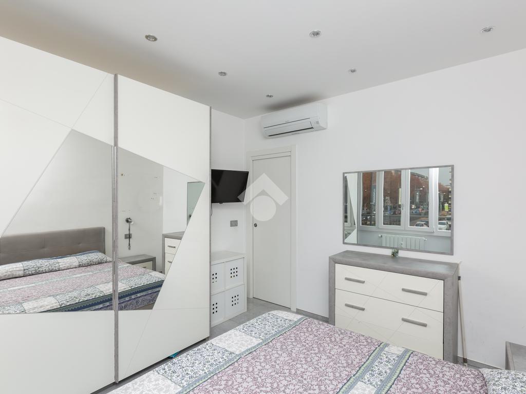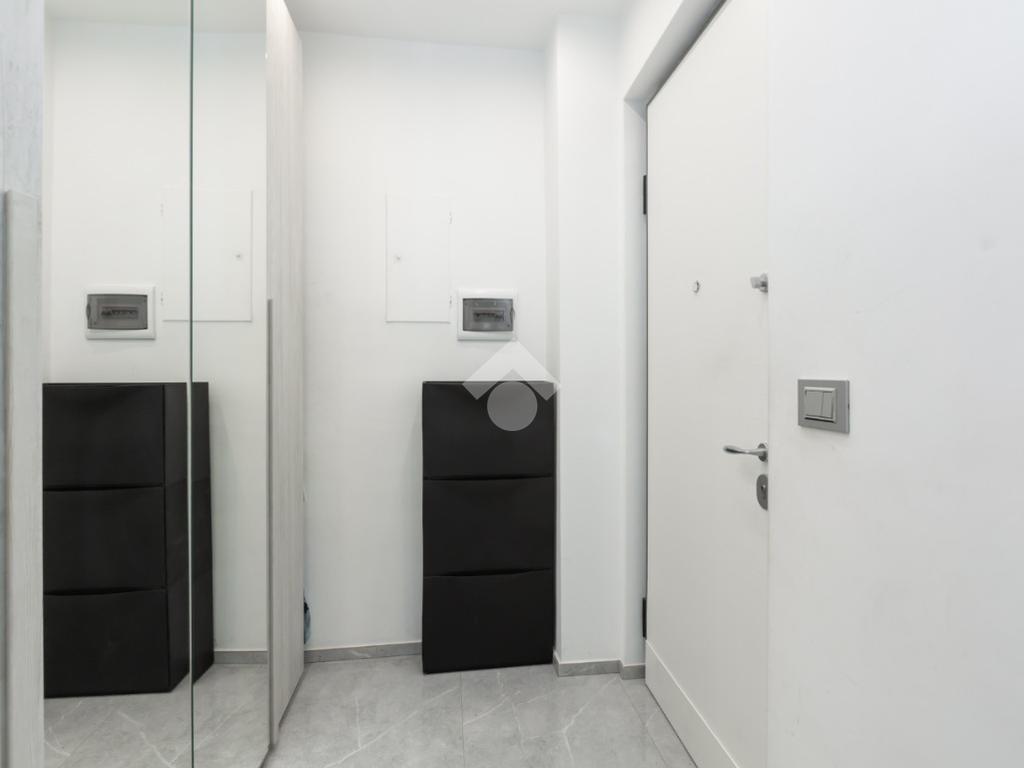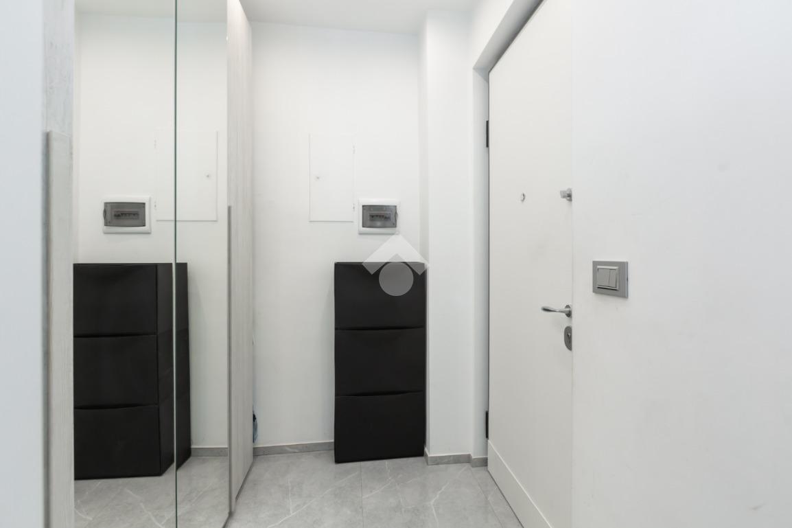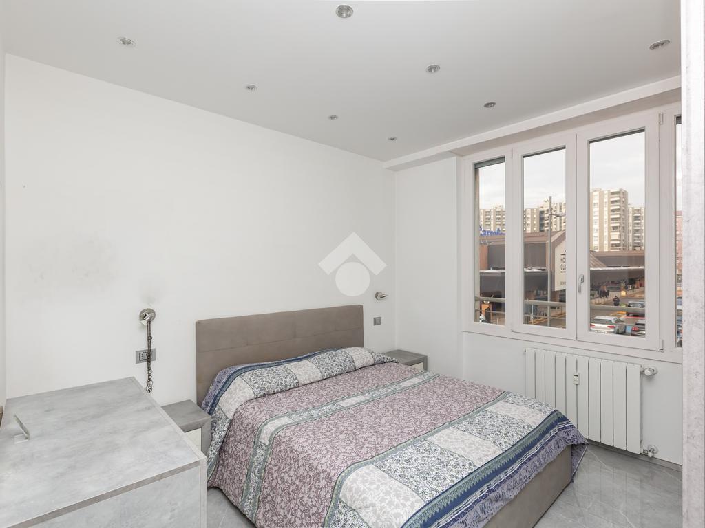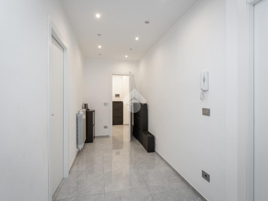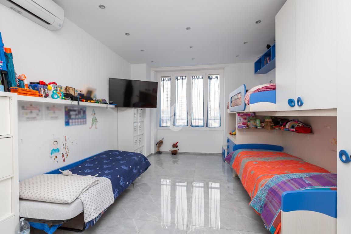 L’appartamento è al primo piano, raggiungibile tramite ascensore, in un complesso decoroso rientrato dalla strada grazie al giardino condominiale. L'immobile gode di una tripla esposizione. Internamente è stato completamente e finemente ristrutturato e si sviluppa su una metratura generosa, caratteristica che rende vivibile al meglio ogni singolo vano. L'accesso avviene tramite un portoncino blindato che si affaccia sull’ingresso il quale ci accompagna su ampio disimpegno che divide in modo ottimale tutti i vani dell'immobile. La zona giorno è un ambiente ampio e confortevole. Date le dimensioni ci permette di avere una cucina lineare, con un tavolo quadrato centrato rispetto alla stanza, ed una parete dedicata alla tv con difronte un comodo divano. L’affaccio è lato cortile, grazie alle finestre e all’accesso ad un ampio balcone verandato. Le camere da letto sono due, entrambe dotate di tutti i comfort e con affaccio su via Stelvio fronte Carrefour. L’appartamento ha i doppi servizi. Il primo con vasca e finestra. Il secondo con doccia e porta finestra che dà sul balcone interno. Adiacente al primo servizio troviamo un ripostiglio attualmente utilizzato come lavanderia. Cucina e camere sono munite di climatizzatore. Tutti gli infissi esterni sono in pvc e le tapparelle elettriche. La proprietà dispone di una cantina al piano interrato. Il teleriscaldamento è il sistema di riscaldamento presente nel condominio.
