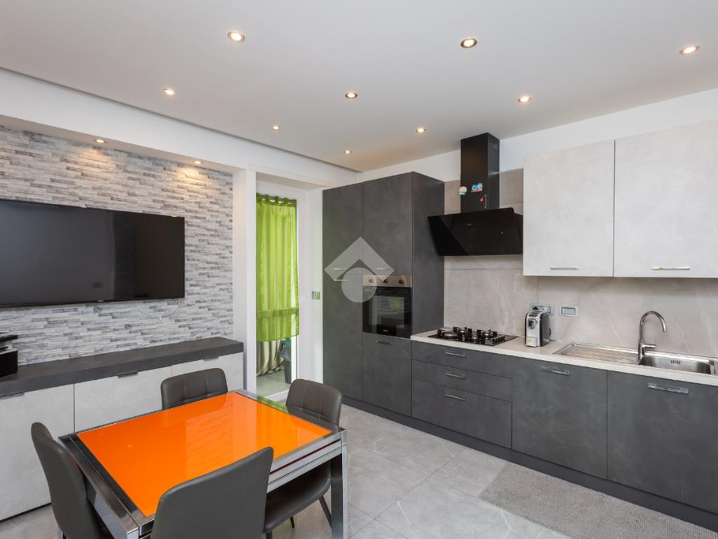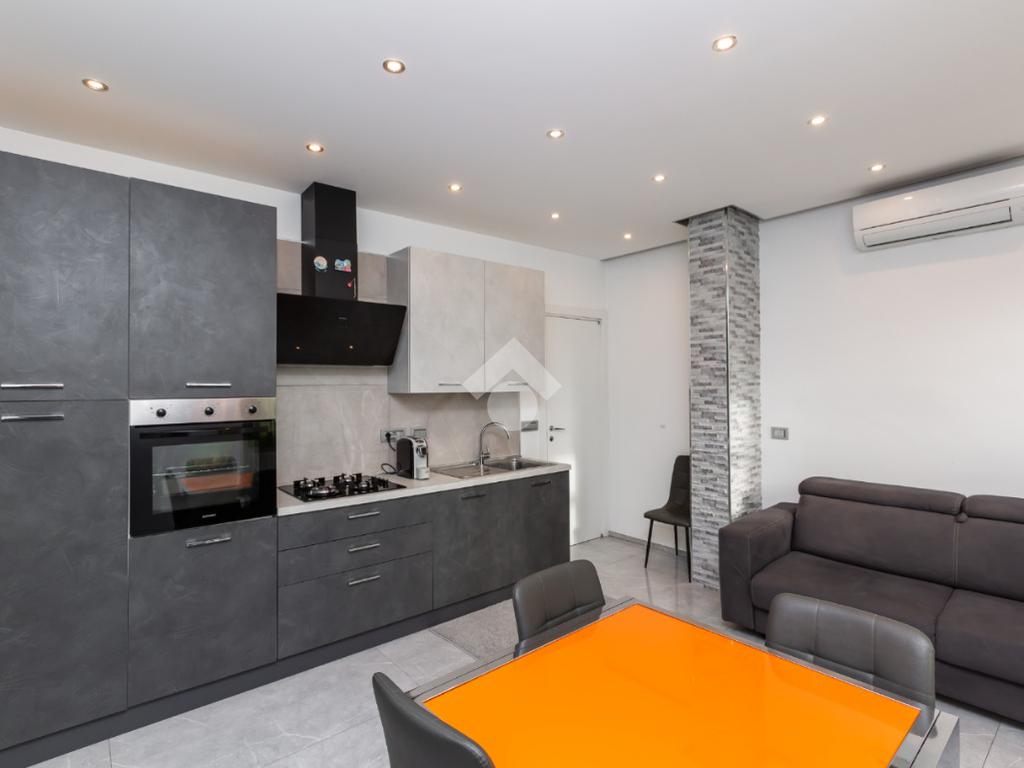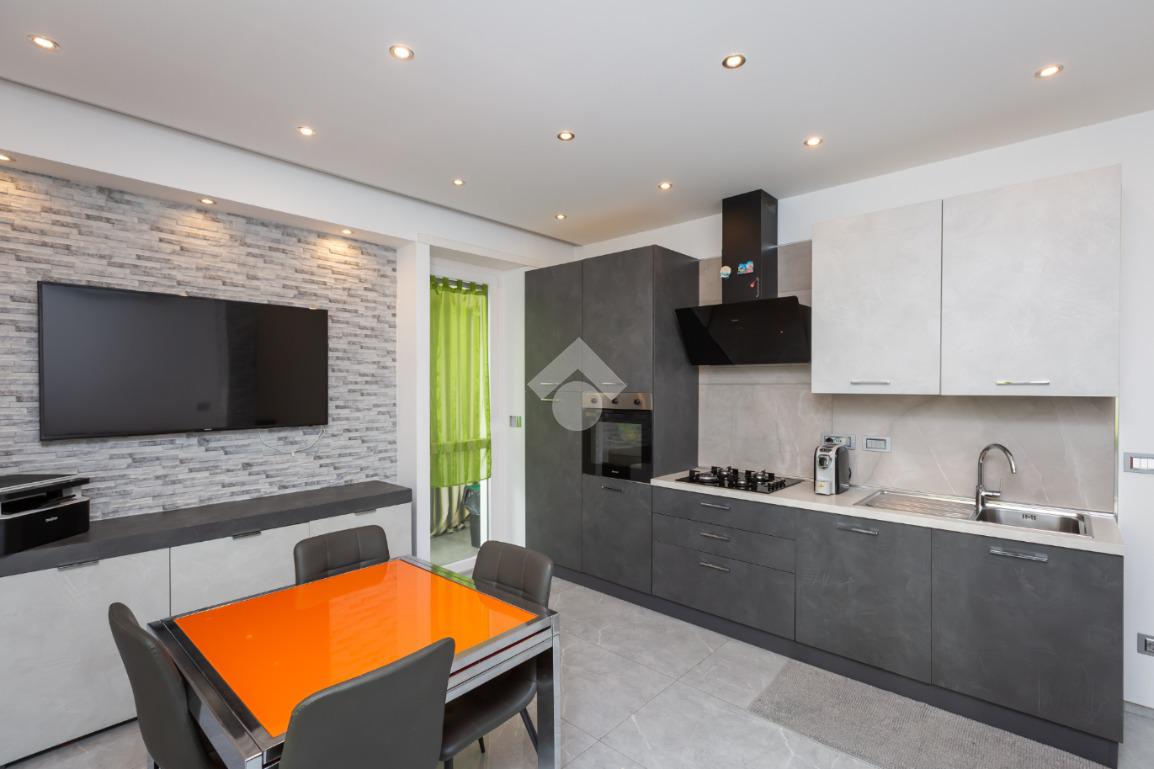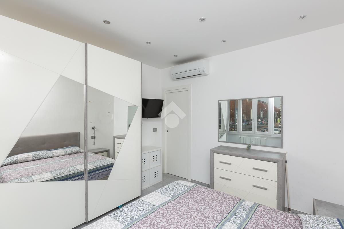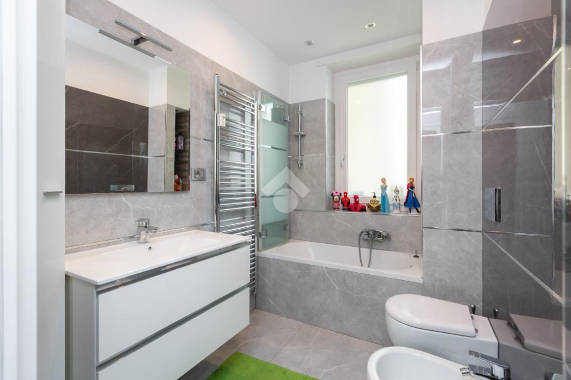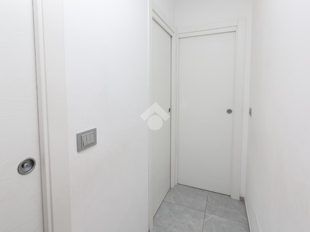 L’appartamento è al primo piano, raggiungibile tramite ascensore, in un complesso decoroso rientrato dalla strada grazie al giardino condominiale. L'immobile gode di una tripla esposizione. Internamente è stato completamente e finemente ristrutturato e si sviluppa su una metratura generosa, caratteristica che rende vivibile al meglio ogni singolo vano. L'accesso avviene tramite un portoncino blindato che si affaccia sull’ingresso il quale ci accompagna su ampio disimpegno che divide in modo ottimale tutti i vani dell'immobile. La zona giorno è un ambiente ampio e confortevole. Date le dimensioni ci permette di avere una cucina lineare, con un tavolo quadrato centrato rispetto alla stanza, ed una parete dedicata alla tv con difronte un comodo divano. L’affaccio è lato cortile, grazie alle finestre e all’accesso ad un ampio balcone verandato. Le camere da letto sono due, entrambe dotate di tutti i comfort e con affaccio su via Stelvio fronte Carrefour. L’appartamento ha i doppi servizi. Il primo con vasca e finestra. Il secondo con doccia e porta finestra che dà sul balcone interno. Adiacente al primo servizio troviamo un ripostiglio attualmente utilizzato come lavanderia. Cucina e camere sono munite di climatizzatore. Tutti gli infissi esterni sono in pvc e le tapparelle elettriche. La proprietà dispone di una cantina al piano interrato. Il teleriscaldamento è il sistema di riscaldamento presente nel condominio.