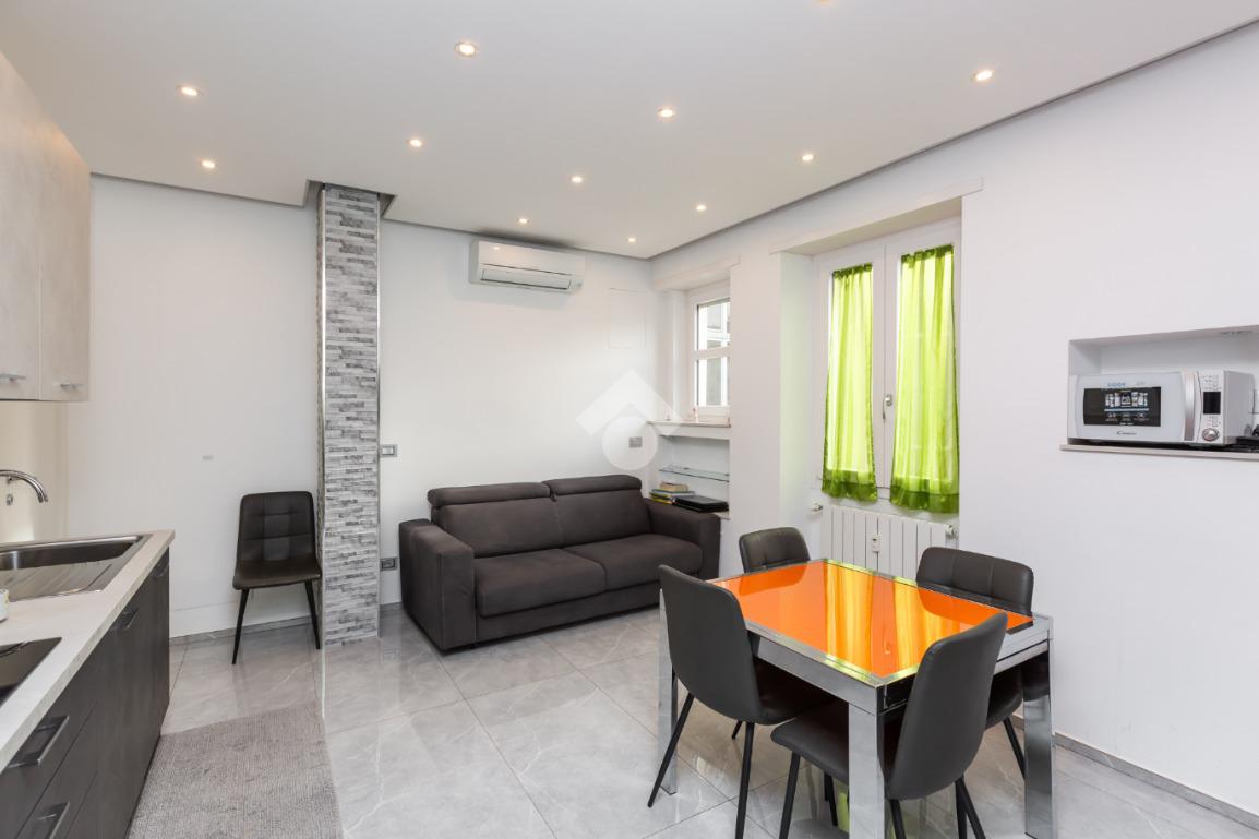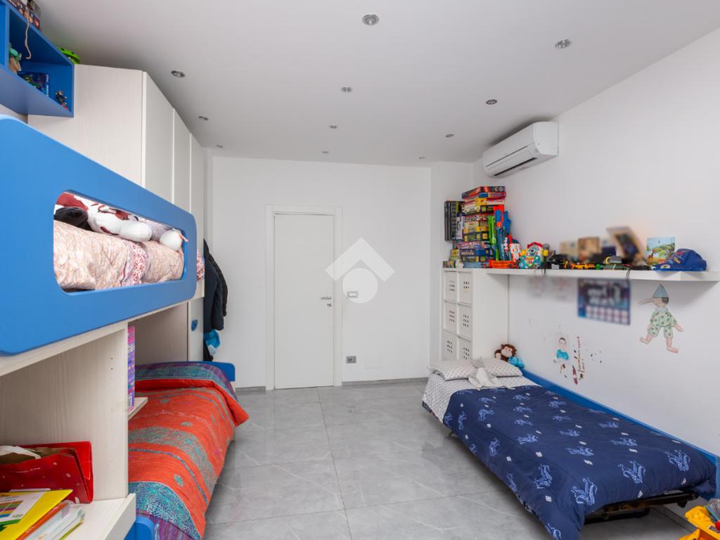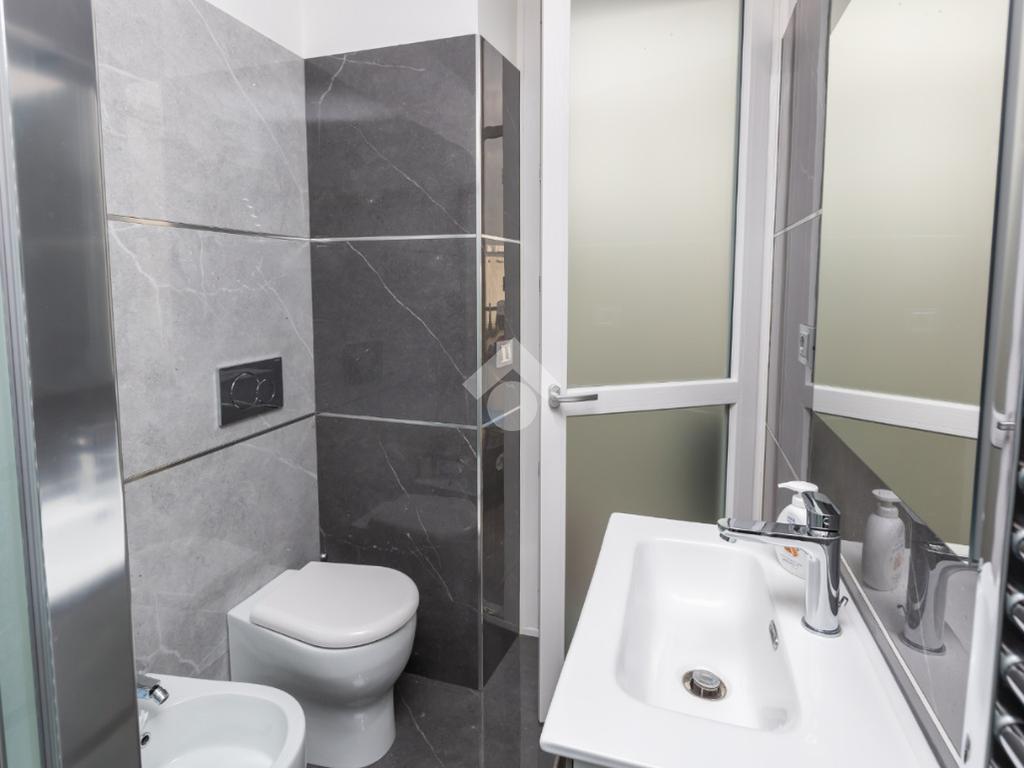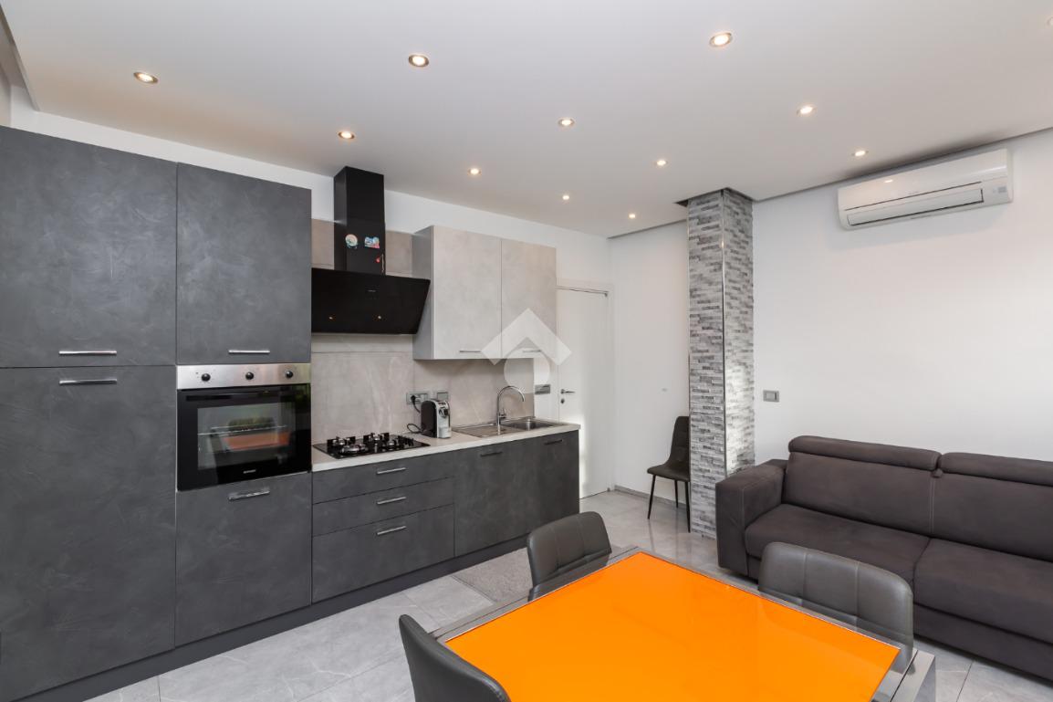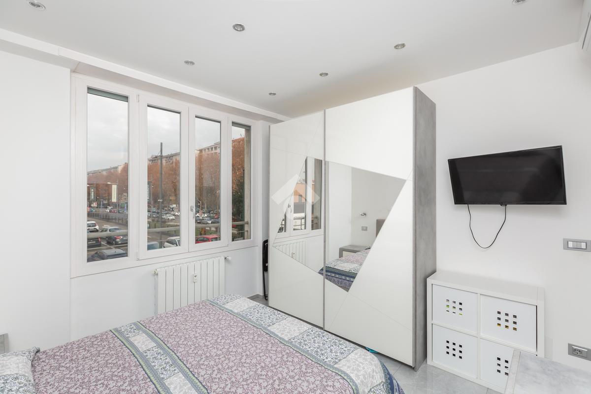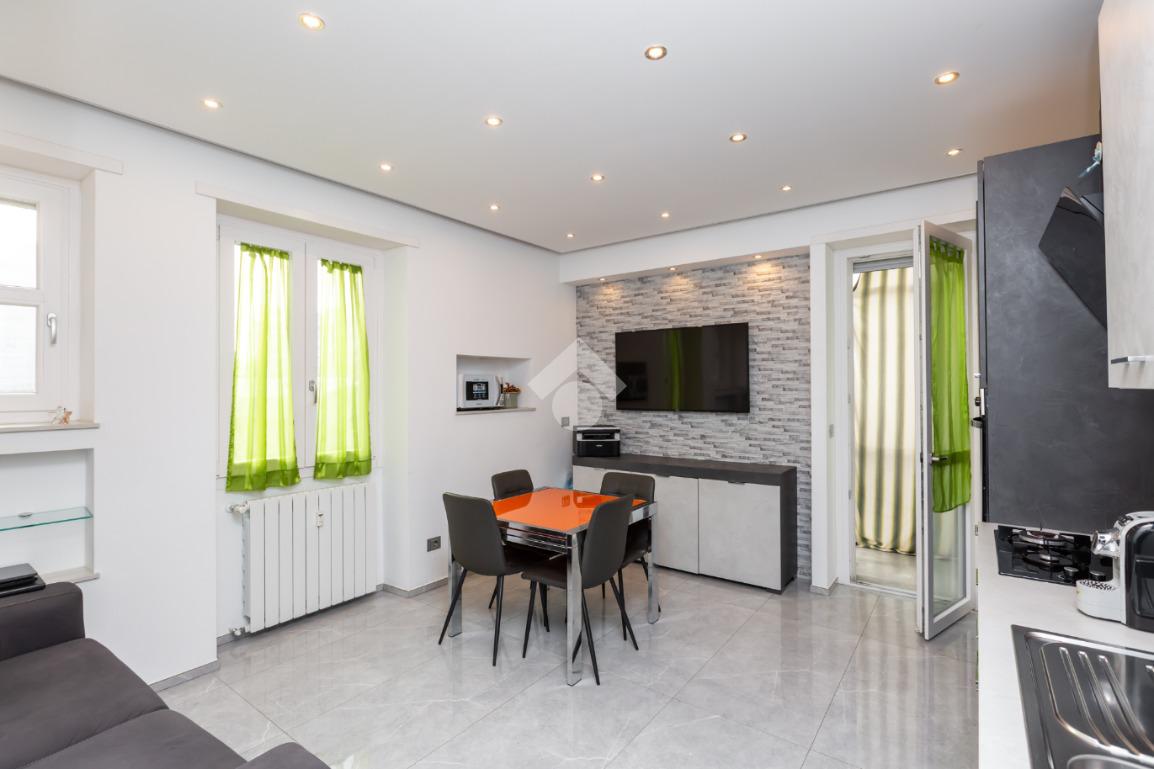 L’appartamento è al primo piano, raggiungibile tramite ascensore, in un complesso decoroso rientrato dalla strada grazie al giardino condominiale. L'immobile gode di una tripla esposizione. Internamente è stato completamente e finemente ristrutturato e si sviluppa su una metratura generosa, caratteristica che rende vivibile al meglio ogni singolo vano. L'accesso avviene tramite un portoncino blindato che si affaccia sull’ingresso il quale ci accompagna su ampio disimpegno che divide in modo ottimale tutti i vani dell'immobile. La zona giorno è un ambiente ampio e confortevole. Date le dimensioni ci permette di avere una cucina lineare, con un tavolo quadrato centrato rispetto alla stanza, ed una parete dedicata alla tv con difronte un comodo divano. L’affaccio è lato cortile, grazie alle finestre e all’accesso ad un ampio balcone verandato. Le camere da letto sono due, entrambe dotate di tutti i comfort e con affaccio su via Stelvio fronte Carrefour. L’appartamento ha i doppi servizi. Il primo con vasca e finestra. Il secondo con doccia e porta finestra che dà sul balcone interno. Adiacente al primo servizio troviamo un ripostiglio attualmente utilizzato come lavanderia. Cucina e camere sono munite di climatizzatore. Tutti gli infissi esterni sono in pvc e le tapparelle elettriche. La proprietà dispone di una cantina al piano interrato. Il teleriscaldamento è il sistema di riscaldamento presente nel condominio.