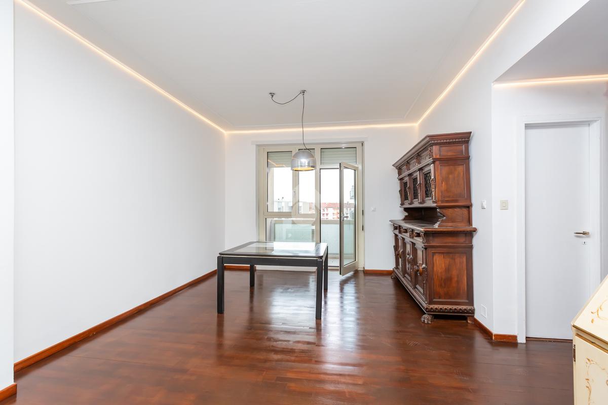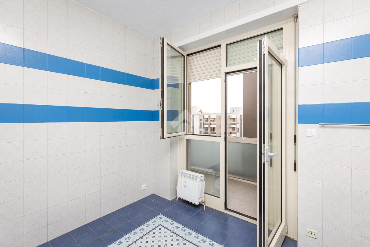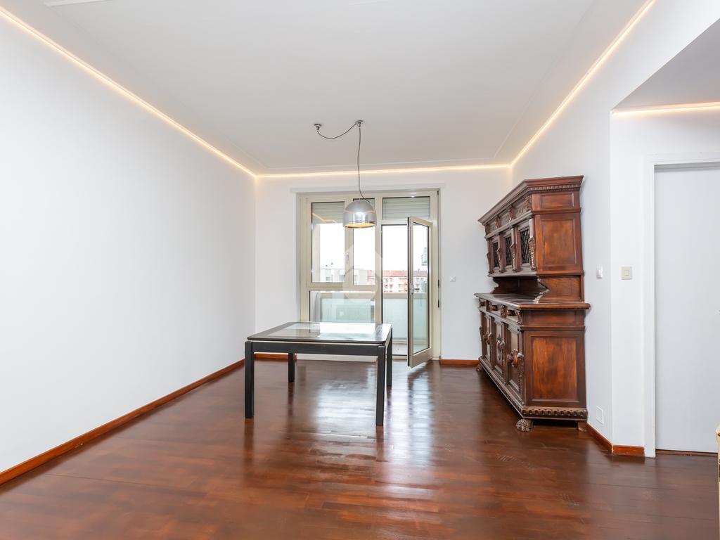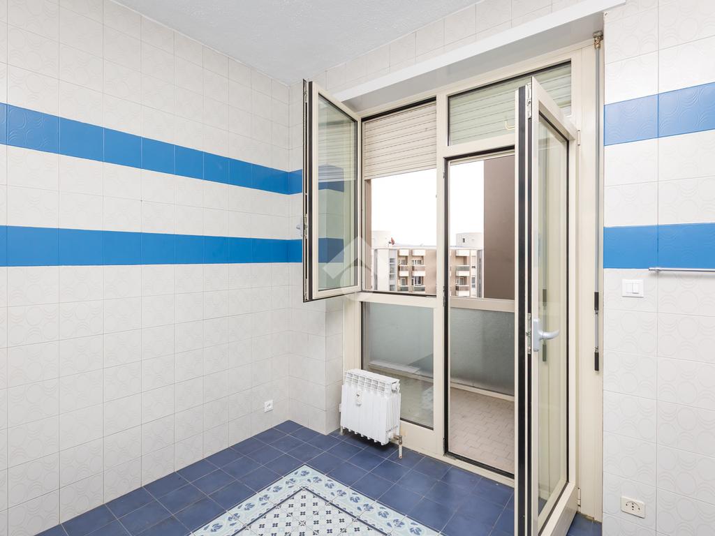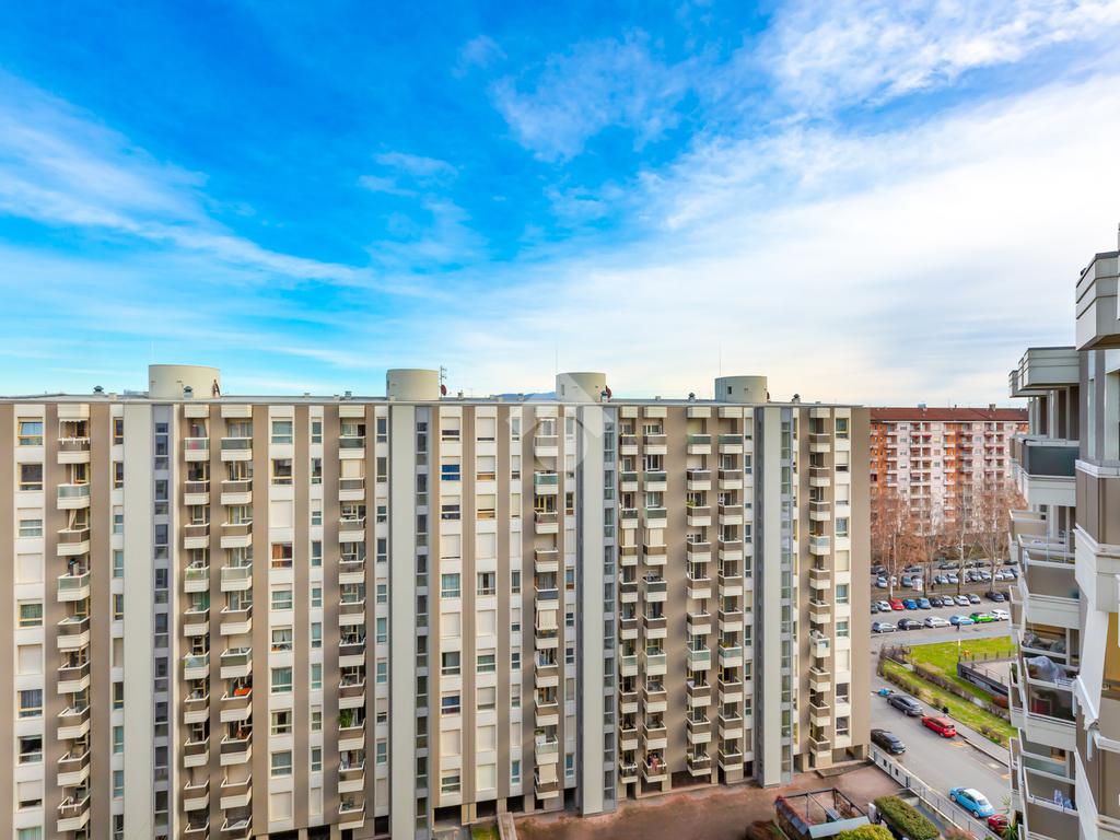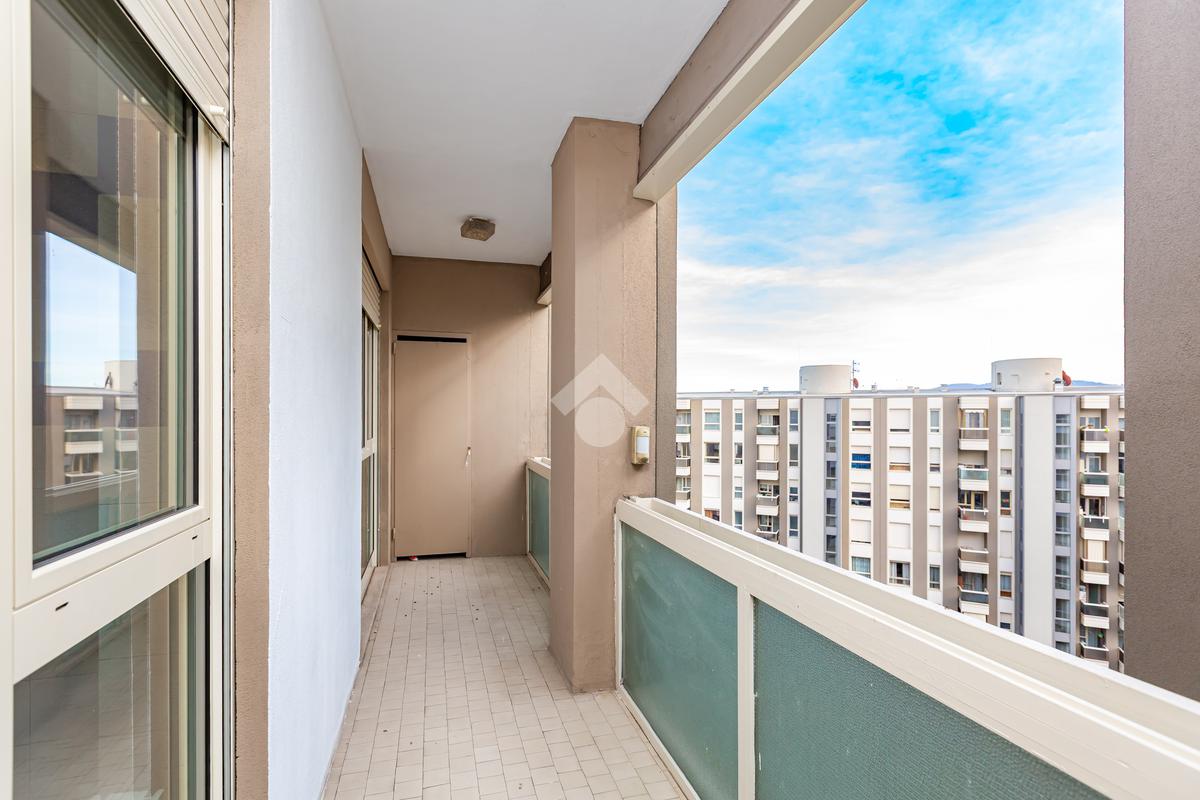 La scala dove si trova l’appartamento è dotata del doppio ascensore. L’immobile è sito al decimo ed ultimo piano. Il portoncino blindato ci accompagna su un ampio ingresso il quale divide in maniera ottimale ogni singolo ambiente. La cucina è abitabile ed affaccia sul cortile grazie al balcone. Il soggiorno è sicuramente l’ambiente più accogliente della casa e data la sua metratura, circa 44 mq, ci garantisce di godere in tutta comodità momenti di relax. Da entrambi i lati è munito di balcone. A servizio della zona giorno c’è un bagno, ad oggi munito di vasca e porta finestra per accedere al balcone comunicante con soggiorno e cucina. Grazie al disimpegno, il quale divide le due zone, si accede alla zona notte dove troviamo una camera da letto ed il secondo bagno, quest’ultimo con doccia e finestrato. Nel disimpegno oltre al ripostiglio, troviamo una seria di armadi a muro. Tutti gli infissi esterni sono in pvc con doppio vetro. Il sistema di riscaldamento nel condominio è il teleriscaldamento. Completa la proprietà un locale ad uso cantina sito al secondo piano interrato.