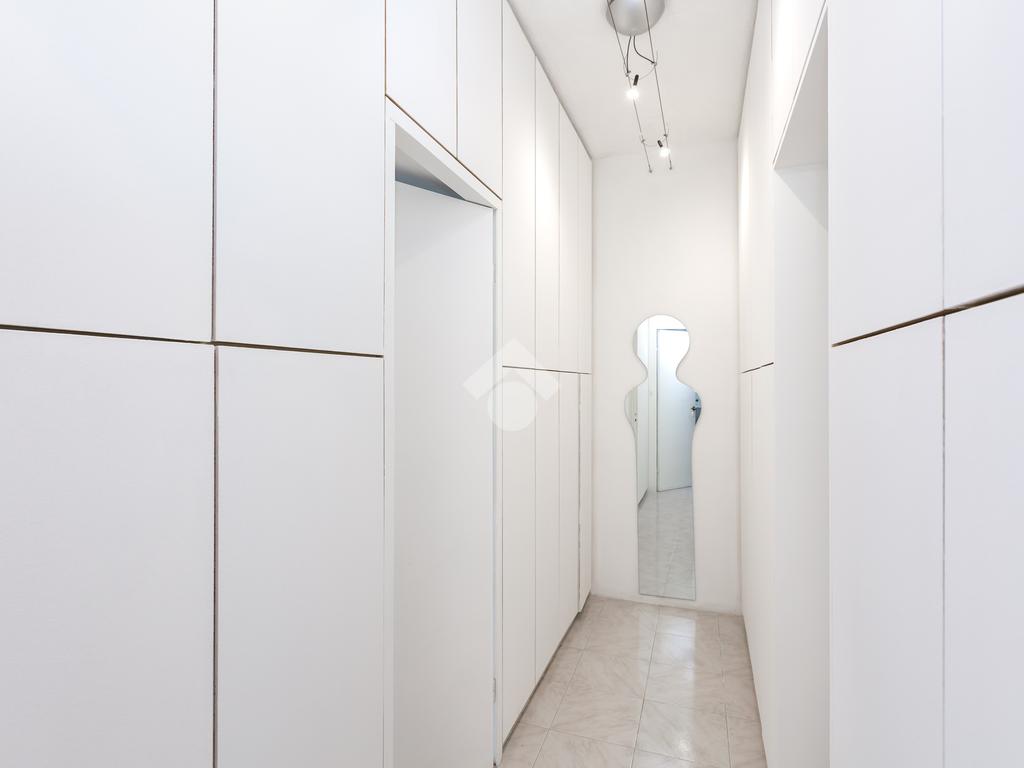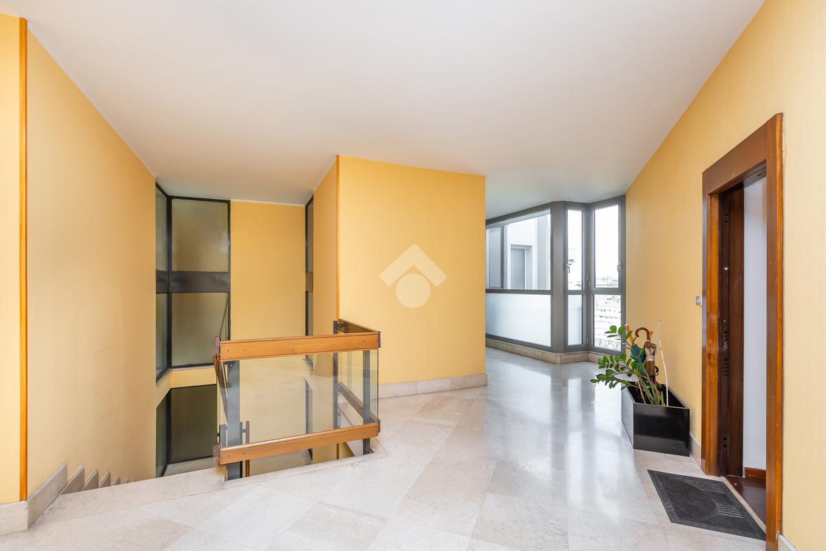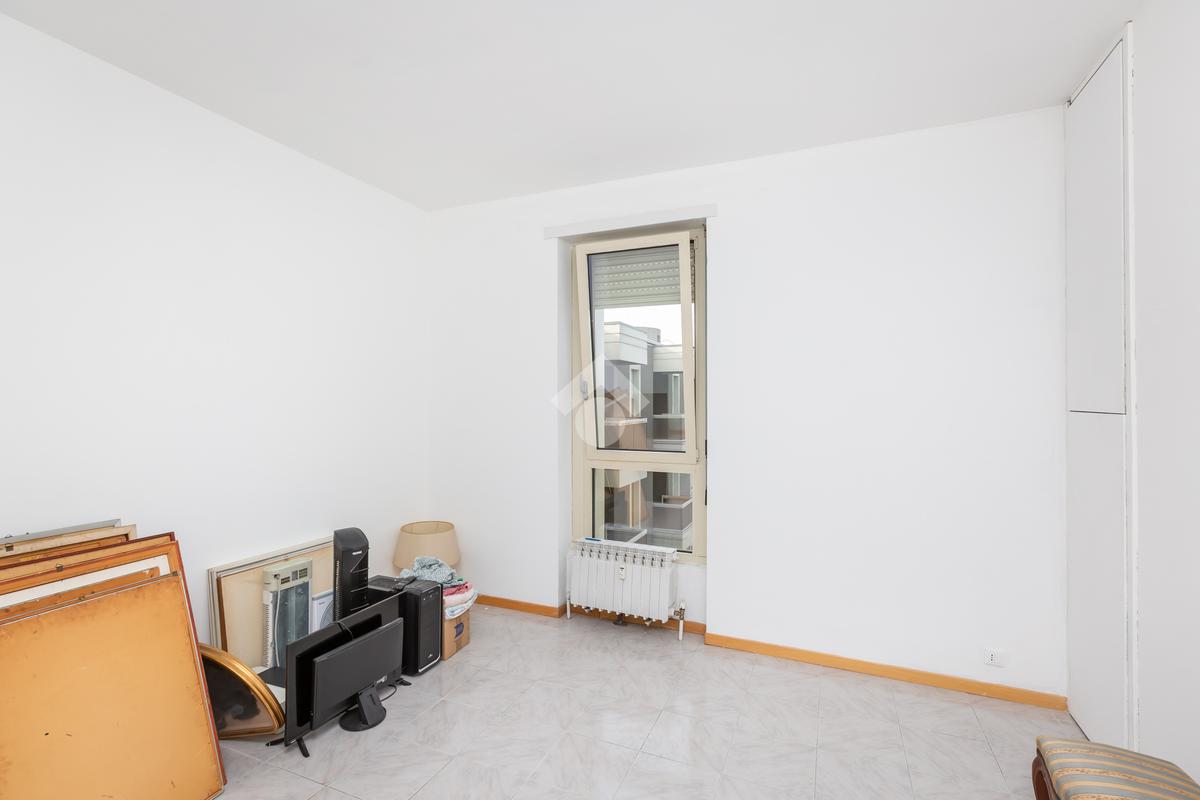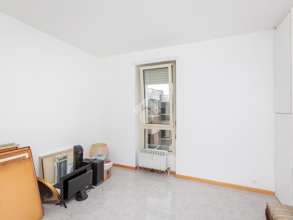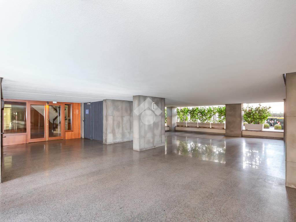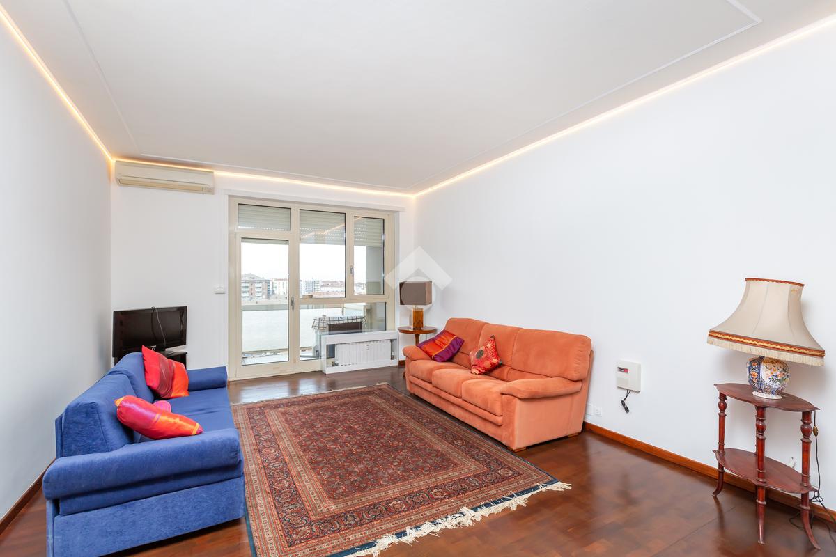 La scala dove si trova l’appartamento è dotata del doppio ascensore. L’immobile è sito al decimo ed ultimo piano. Il portoncino blindato ci accompagna su un ampio ingresso il quale divide in maniera ottimale ogni singolo ambiente. La cucina è abitabile ed affaccia sul cortile grazie al balcone. Il soggiorno è sicuramente l’ambiente più accogliente della casa e data la sua metratura, circa 44 mq, ci garantisce di godere in tutta comodità momenti di relax. Da entrambi i lati è munito di balcone. A servizio della zona giorno c’è un bagno, ad oggi munito di vasca e porta finestra per accedere al balcone comunicante con soggiorno e cucina. Grazie al disimpegno, il quale divide le due zone, si accede alla zona notte dove troviamo una camera da letto ed il secondo bagno, quest’ultimo con doccia e finestrato. Nel disimpegno oltre al ripostiglio, troviamo una seria di armadi a muro. Tutti gli infissi esterni sono in pvc con doppio vetro. Il sistema di riscaldamento nel condominio è il teleriscaldamento. Completa la proprietà un locale ad uso cantina sito al secondo piano interrato.