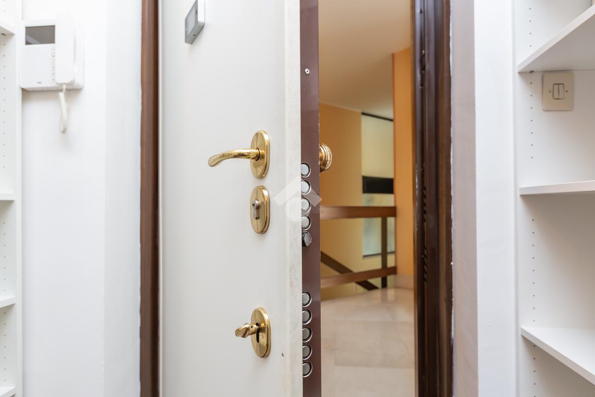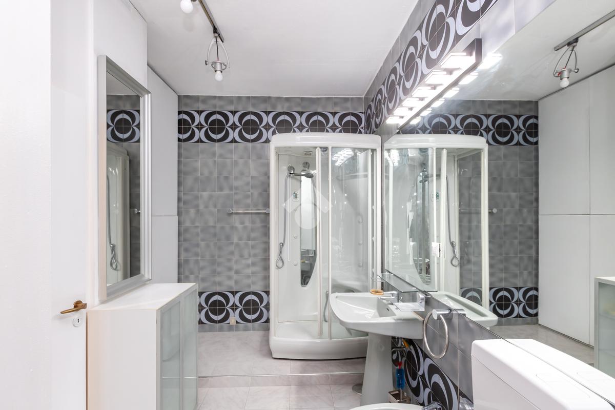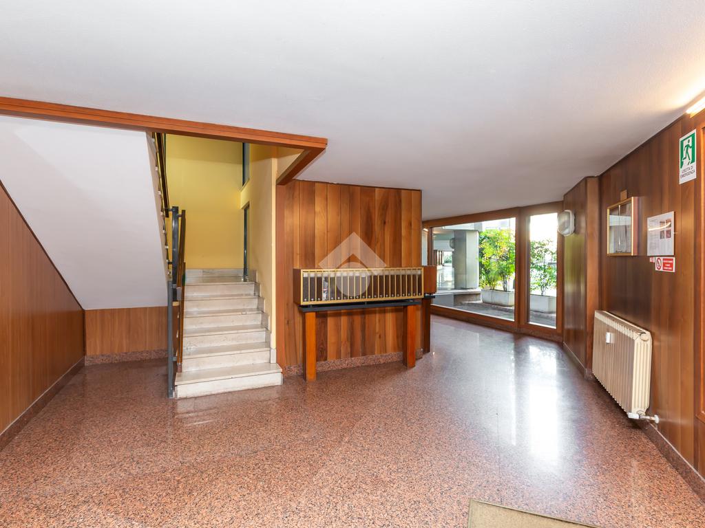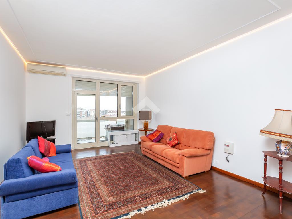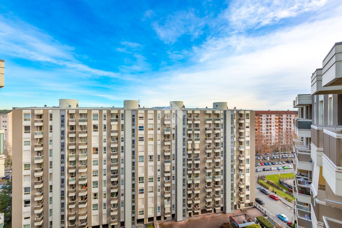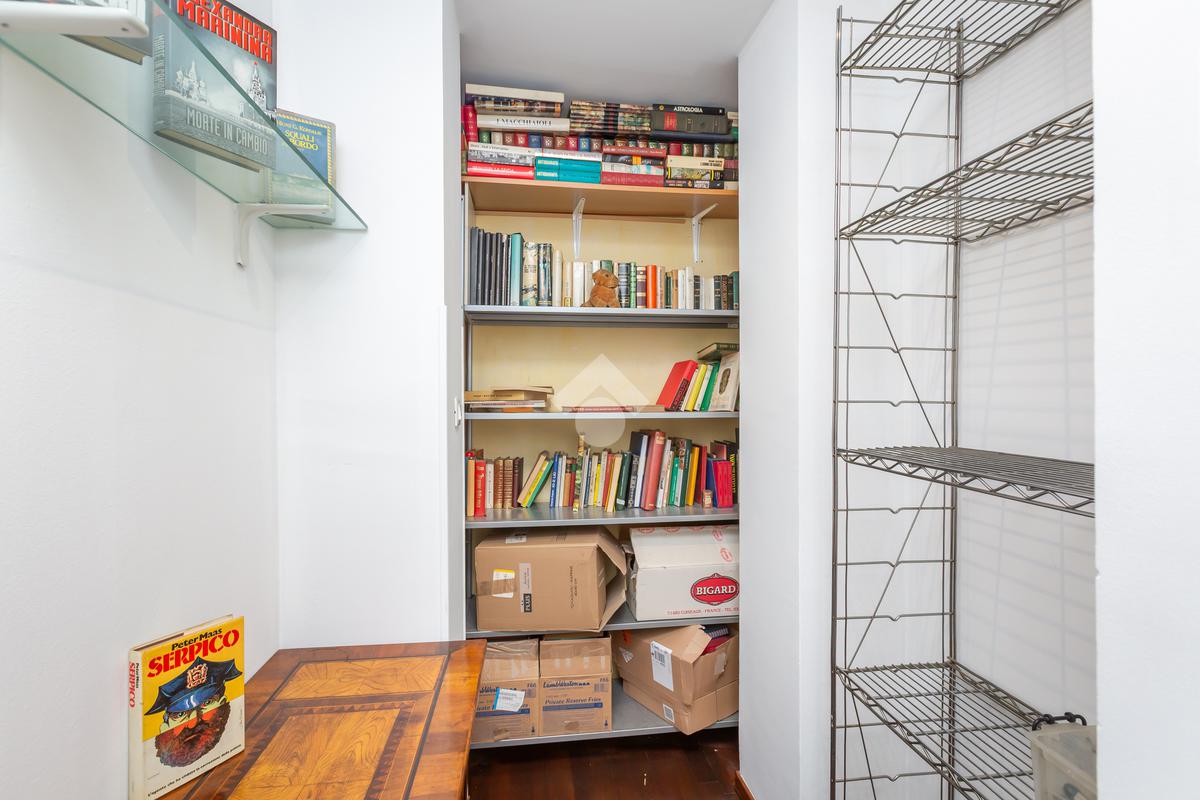 La scala dove si trova l’appartamento è dotata del doppio ascensore. L’immobile è sito al decimo ed ultimo piano. Il portoncino blindato ci accompagna su un ampio ingresso il quale divide in maniera ottimale ogni singolo ambiente. La cucina è abitabile ed affaccia sul cortile grazie al balcone. Il soggiorno è sicuramente l’ambiente più accogliente della casa e data la sua metratura, circa 44 mq, ci garantisce di godere in tutta comodità momenti di relax. Da entrambi i lati è munito di balcone. A servizio della zona giorno c’è un bagno, ad oggi munito di vasca e porta finestra per accedere al balcone comunicante con soggiorno e cucina. Grazie al disimpegno, il quale divide le due zone, si accede alla zona notte dove troviamo una camera da letto ed il secondo bagno, quest’ultimo con doccia e finestrato. Nel disimpegno oltre al ripostiglio, troviamo una seria di armadi a muro. Tutti gli infissi esterni sono in pvc con doppio vetro. Il sistema di riscaldamento nel condominio è il teleriscaldamento. Completa la proprietà un locale ad uso cantina sito al secondo piano interrato.