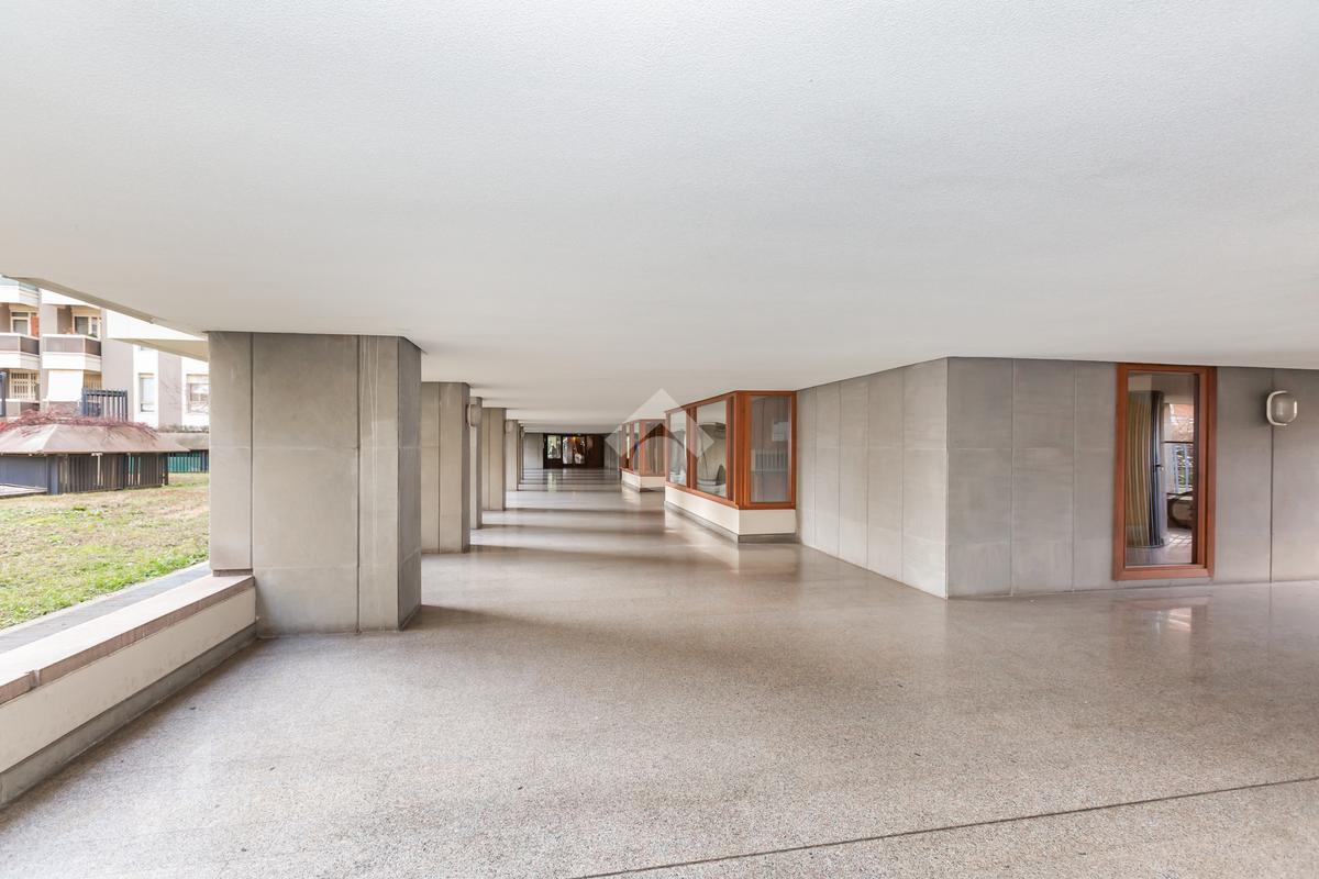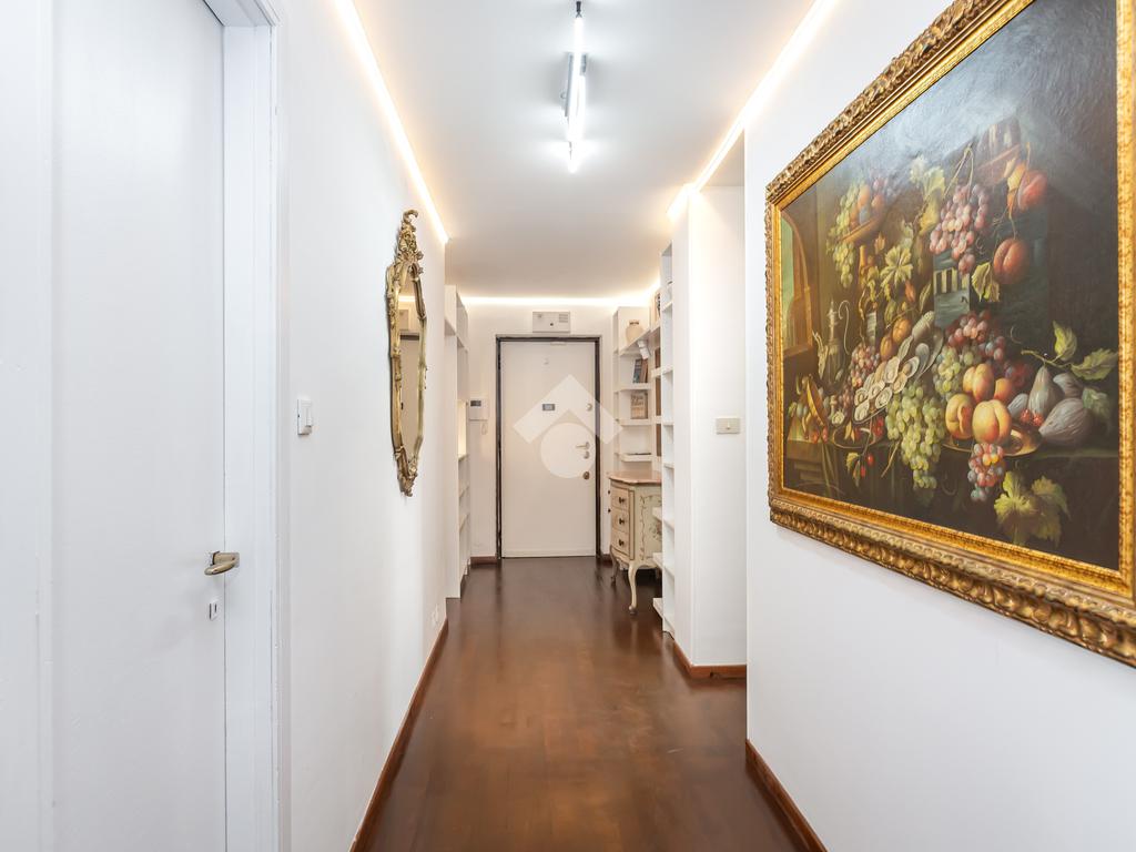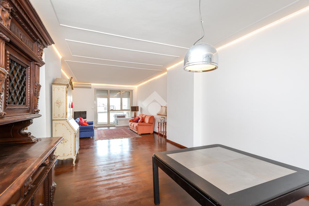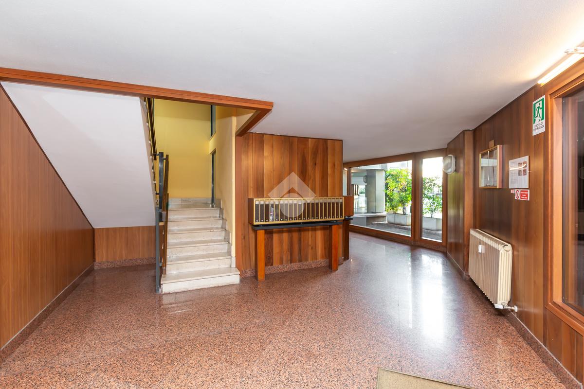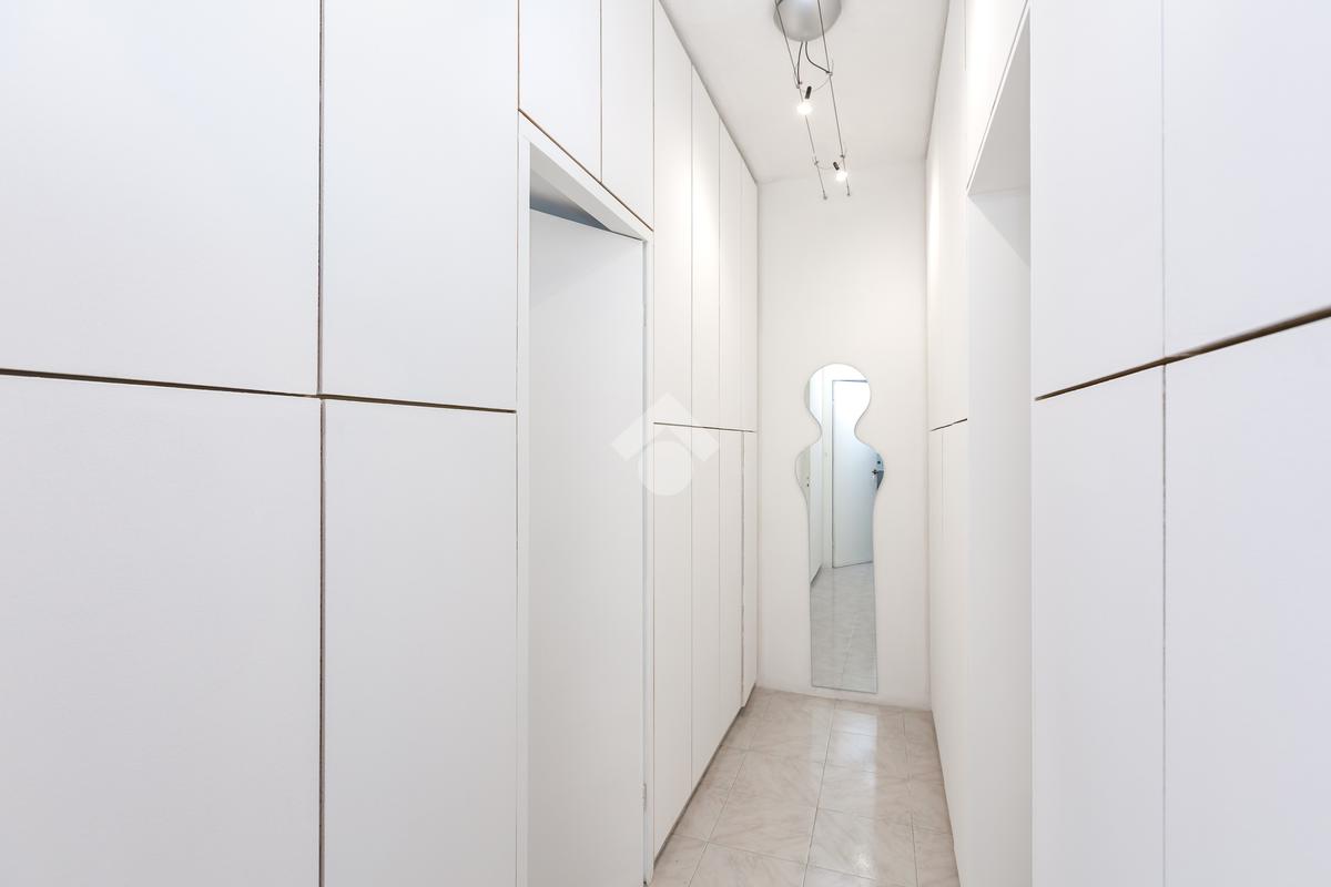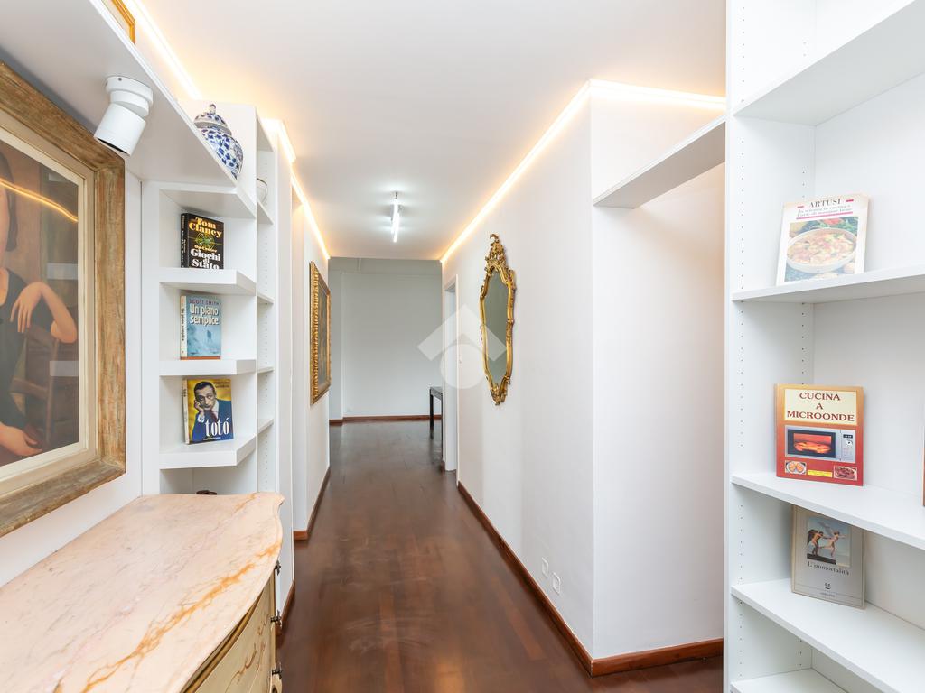 La scala dove si trova l’appartamento è dotata del doppio ascensore. L’immobile è sito al decimo ed ultimo piano. Il portoncino blindato ci accompagna su un ampio ingresso il quale divide in maniera ottimale ogni singolo ambiente. La cucina è abitabile ed affaccia sul cortile grazie al balcone. Il soggiorno è sicuramente l’ambiente più accogliente della casa e data la sua metratura, circa 44 mq, ci garantisce di godere in tutta comodità momenti di relax. Da entrambi i lati è munito di balcone. A servizio della zona giorno c’è un bagno, ad oggi munito di vasca e porta finestra per accedere al balcone comunicante con soggiorno e cucina. Grazie al disimpegno, il quale divide le due zone, si accede alla zona notte dove troviamo una camera da letto ed il secondo bagno, quest’ultimo con doccia e finestrato. Nel disimpegno oltre al ripostiglio, troviamo una seria di armadi a muro. Tutti gli infissi esterni sono in pvc con doppio vetro. Il sistema di riscaldamento nel condominio è il teleriscaldamento. Completa la proprietà un locale ad uso cantina sito al secondo piano interrato.
