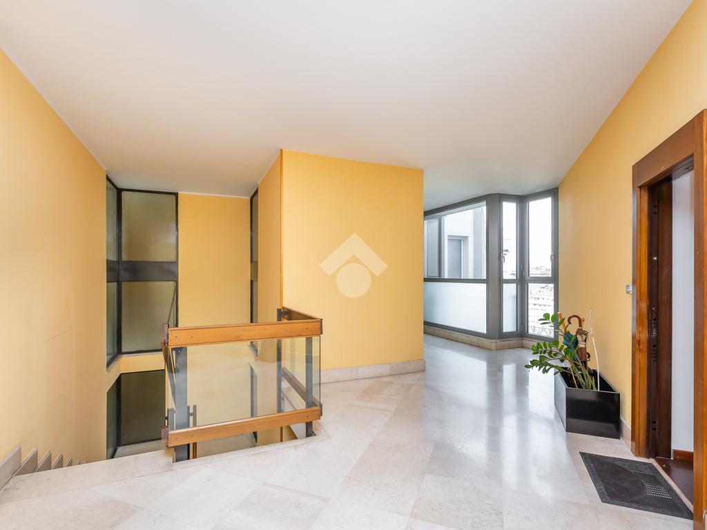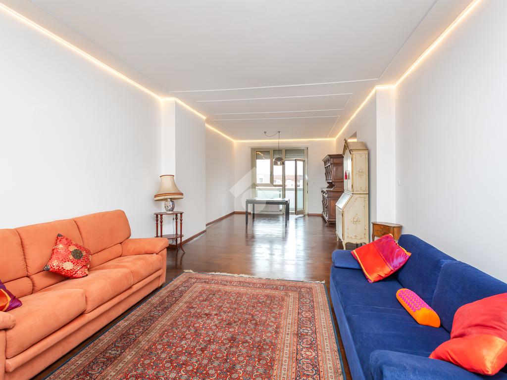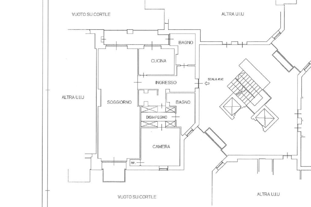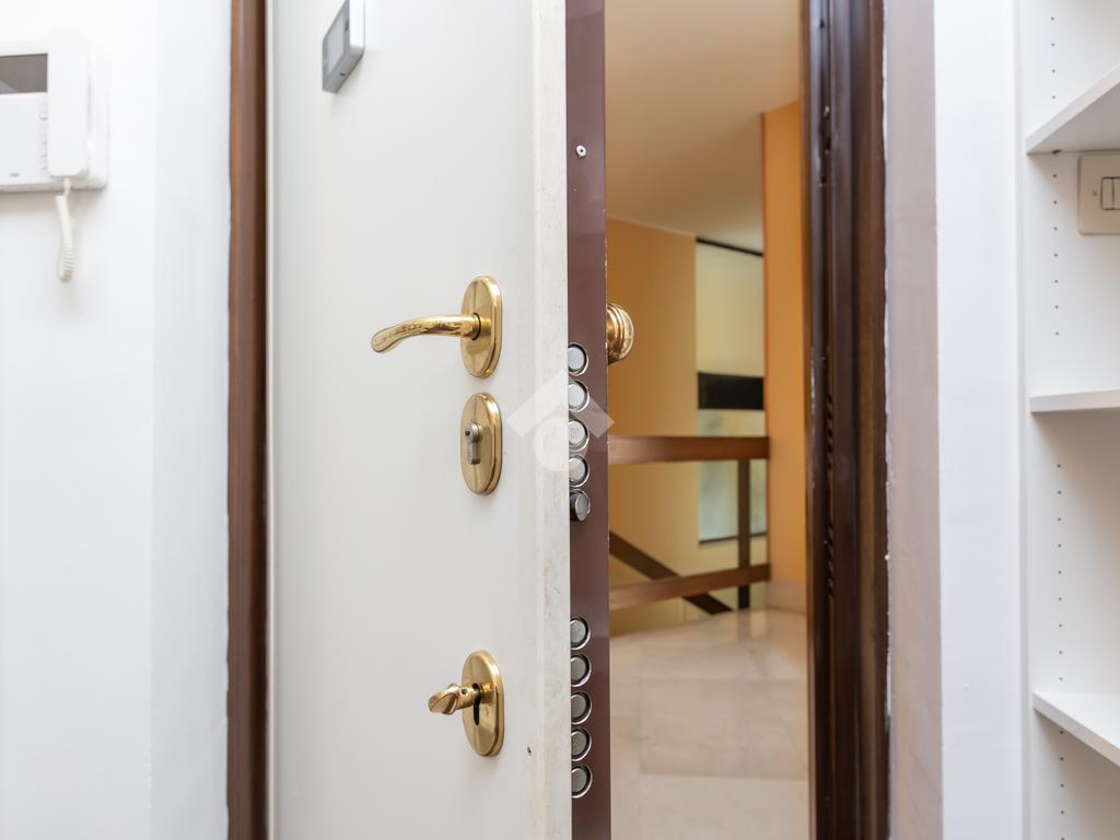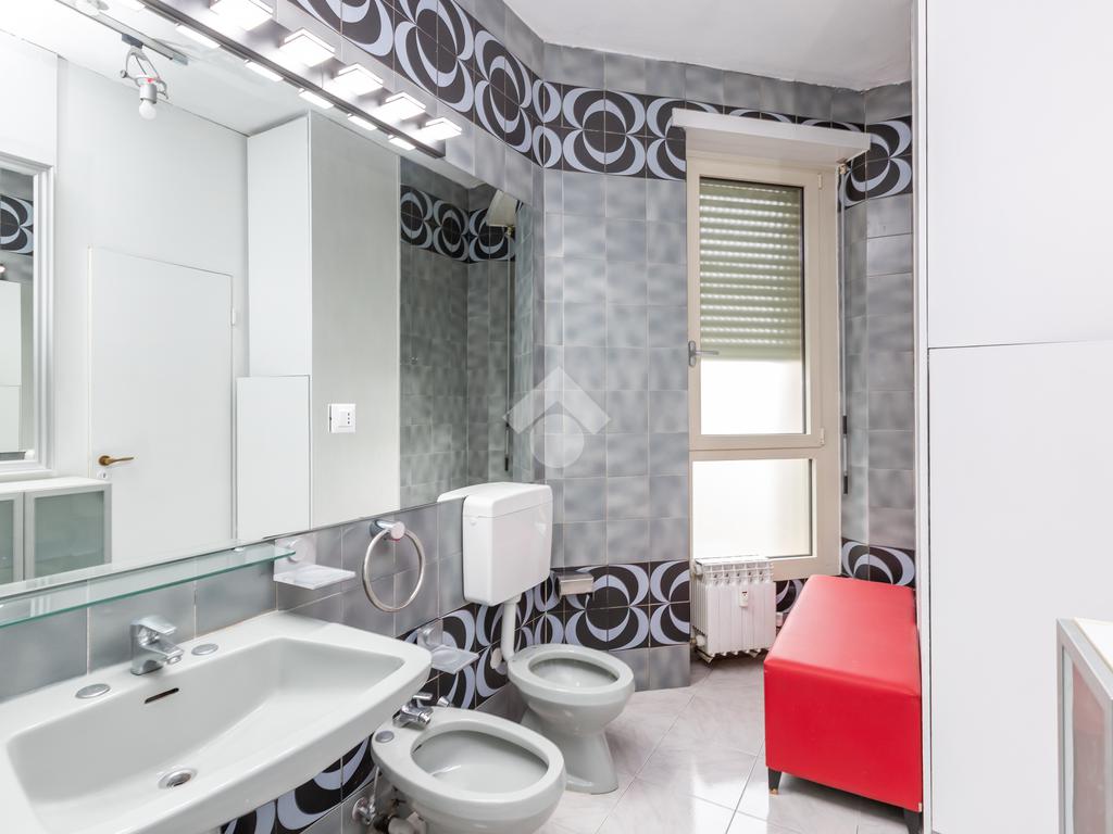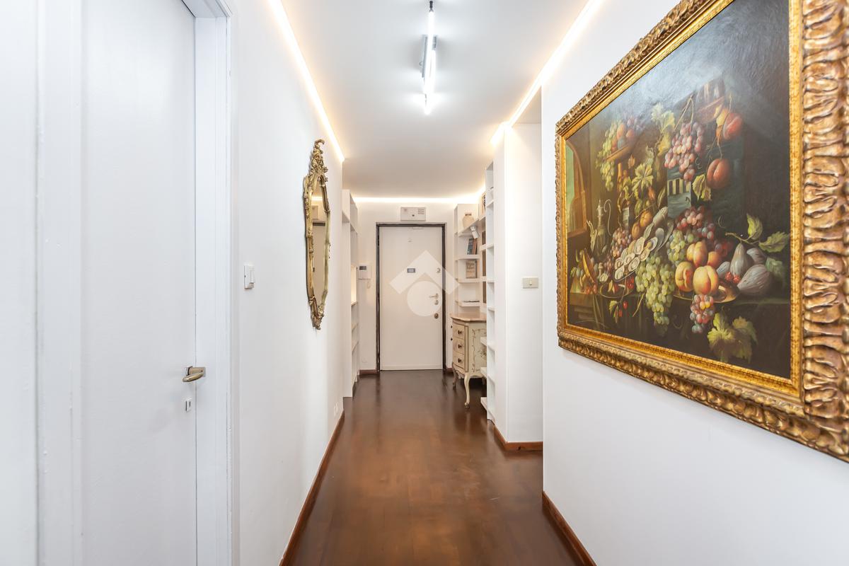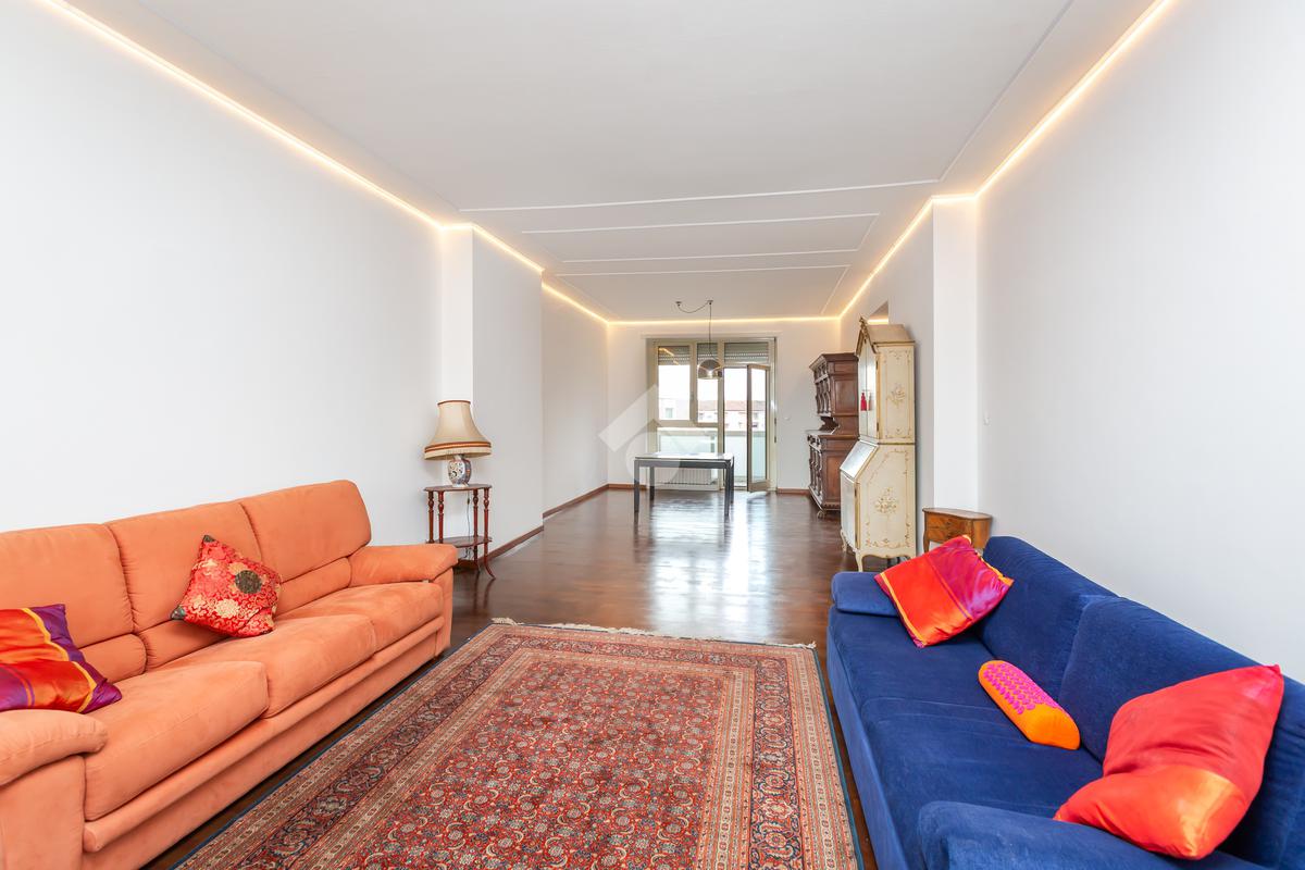 La scala dove si trova l’appartamento è dotata del doppio ascensore. L’immobile è sito al decimo ed ultimo piano. Il portoncino blindato ci accompagna su un ampio ingresso il quale divide in maniera ottimale ogni singolo ambiente. La cucina è abitabile ed affaccia sul cortile grazie al balcone. Il soggiorno è sicuramente l’ambiente più accogliente della casa e data la sua metratura, circa 44 mq, ci garantisce di godere in tutta comodità momenti di relax. Da entrambi i lati è munito di balcone. A servizio della zona giorno c’è un bagno, ad oggi munito di vasca e porta finestra per accedere al balcone comunicante con soggiorno e cucina. Grazie al disimpegno, il quale divide le due zone, si accede alla zona notte dove troviamo una camera da letto ed il secondo bagno, quest’ultimo con doccia e finestrato. Nel disimpegno oltre al ripostiglio, troviamo una seria di armadi a muro. Tutti gli infissi esterni sono in pvc con doppio vetro. Il sistema di riscaldamento nel condominio è il teleriscaldamento. Completa la proprietà un locale ad uso cantina sito al secondo piano interrato.