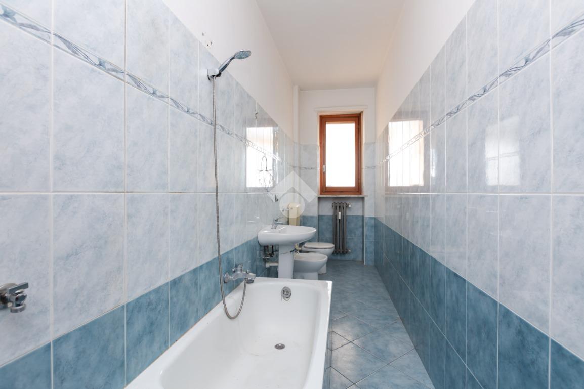 Il complesso dove si trova l’appartamento è composto da tre scale e si presenta in ottime condizioni nelle sue parti comuni in quanto nel 2020 sono stati eseguiti lavori straordinari riguardanti il rifacimento del tetto, la caldaia condominiale ed entrambe le facciate (lato via è stato fatto il cappotto termico). L’appartamento è posto al quarto piano raggiungibile con l’ascensore e ha una doppia esposizione. L'immobile internamente è stato negli anni ristrutturato tranne per quanto riguarda gli infissi interni ed esterni. L'accesso avviene tramite un portoncino che si affaccia su un ampio ingresso parzialmente aperto in quanto è stato per metà abbattuto il muro del tinello. La cucina, composta da tinello con cucinino, è dotata di balcone in affaccio sull'interno cortile. La camera da letto è ampia e ben squadrata e grazie al balcone affaccia sulla via. Il bagno ha un taglio classico dell’epoca, ad oggi munito di vasca ed è finestrato. Completa l'appartamento un ampio ripostiglio. Il riscaldamento è centralizzato con termo valvole. La proprietà dispone di un vano ad uso cantina al piano interrato.